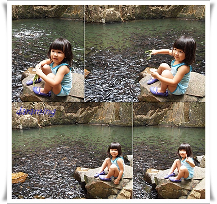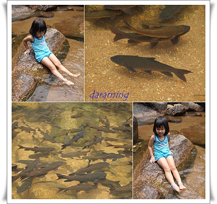 ตรงหน้าน้ำตกก็มีปลานะคะน้องระมิงค์ก็ขอนั่งพักและให้อาหารปลาก่อนคะ