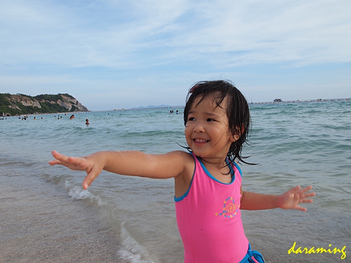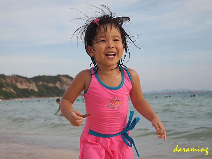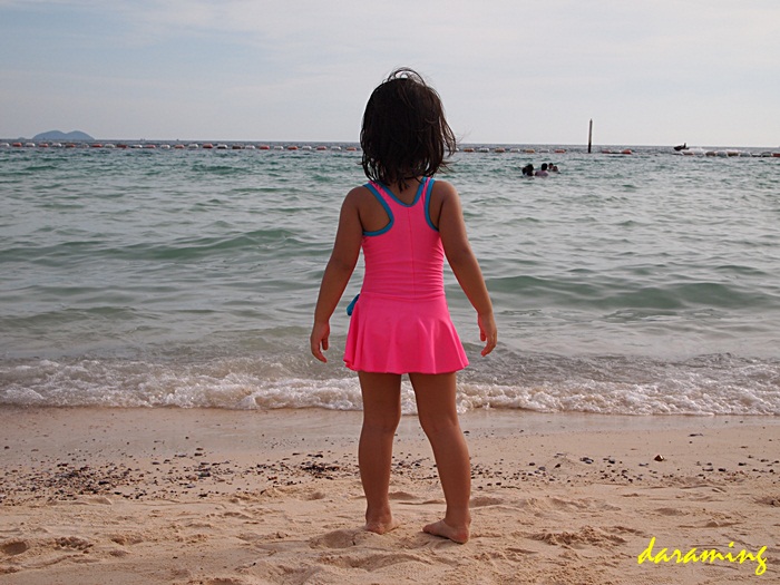 มาถึงที่พักเก็บของเข้าที่พักเสร็จคุณพ่อคุณแม่ก็ชวนไปเล่นน้ำที่หาดแสมก่อนคะไปคะแต่เอ๊ะนางแบบตัวน้อยคนนี้ใครเอ่ยเห็นแต่ด้านหลัง