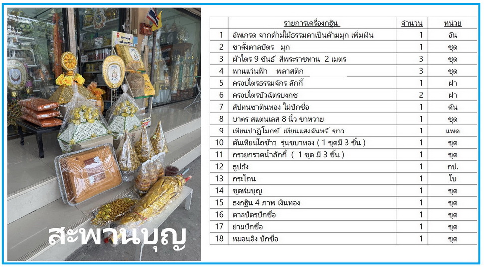 ตัวอย่างลูกค้าสะพานบุญค่ะ หน้า 4 เครื่องกฐินครบชุด เครื่องบวชพระใหม่ ![]() **** ตัวอย่างบางส่วน ลูกค้าจัดกฐิน/บวช สะพานบุญ ปี 2568 คลิกดูเป็นแนวทาง **** ![]() ![]() ![]() ![]() ![]() รับปักตาลปัตร ย่าม หมอนอิง สัปทน งานบวช งานกฐิน มีให้เลือกหลายแบบ สะพานบุญ *** คลิก *** จำหน่าย เครื่องบวช เครื่องกฐิน เจ้าภาพกฐิน ทั้งครบชุดและแยกชิ้น ราคาโปร่งใส ชัดเจน100% จัดกฐิน เป็นเจ้าภาพกฐินวัดป่า ![]() ร้านสะพานบุญ มีบริการจัดชุดกฐินสำเร็จรูป และเครื่องบวชครบชุด สังฆภัณฑ์ออนไลน์ที่ใครๆก็แนะนำบอกต่อ มีบริการส่งพัสดุทั่วไทย สามารถจัดชุดกฐิน และงานบวช ทั้งยกชุดและแยกชิ้น ตามแต่เราเลือกได้ มีบริการรับปักชื่อเจ้าภาพกฐิน งานบวช ช่วยให้ลูกค้าหาของได้อย่างครบถ้วนและสะดวกสบาย ประหยัดเวลา รีวิวเยอะ ไว้ใจได้ ค่ะ ความครบวงจร - ครบเครื่องงานบวชงานกฐิน จัดได้ทั้งของจำเป็นไม่ตกหล่น และถูกต้อง ที่สำคัญ เน้นคุณภาพดี งบประมาณ - มีบริการจัดชุดตามงบประมาณที่กำหนด บริการจัดส่ง - หากไม่สะดวกมาหน้าร้าน สั่งออนไลน์ได้ค่ะ จัดส่งทั่วประเทศ ที่สำคัญ ราคาสินค้าทั้งร้านทุกชิ้น เปิดเผยจริงใจแบบ100% ที่หน้าเว็บ มีบริการพิเศษ ต่างๆ - เช่น งานปักชื่อนาค ปักชื่อเจ้าภาพกฐิน เครื่องกฐินต่างๆเป็นที่ระลึก ![]() ![]() ![]() ![]() ![]() ![]() "ครอบไตรกฐิน และครอบไตรงานบวช สะพานบุญ" คือ ผลิตโดยร้าน สะพานบุญ ซึ่งเป็นร้านสังฆภัณฑ์ที่ขายเครื่องบวชและเครื่องกฐินต่างๆ มีความน่าเชื่อถือ ไว้ใจได้ รีวิวเยอะ ตั้งอยู่ที่ถนนรามอินทรา ปากซอย 109 และมีสินค้าให้เลือกหลากหลายรูปแบบ เช่น ครอบไตรทรงต่างๆ ทั้งทรงพุ่ม ทรงแบน และทรงโค้ง ครอบไตรธรรมจักร ครอบไตรพญานาค ครอบไตรดอกบัว ครอบไตรจักสาน ครอบไตรนกยูง ที่ตกแต่งด้วยดอกไม้พลาสติก ดอกรัก ดอกพุด ลูกปัดสีสัน ลูกปัดทอง หรือดอกมะลิ บัวศิลปชีพ ผ้าเพชร เพื่อใช้ในงานบวชและงานทอดกฐิน ลักษณะของครอบไตรกฐินจากร้านสะพานบุญ รูปแบบหลากหลาย: มีทั้งแบบทรงพุ่ม ทรงแบน ทรงหัวแหลม ทรงโค้ง และทรงหมอน โดยมีตกแต่งด้วยลวดลายและวัสดุที่แตกต่างกัน เช่น ดอกไม้เสมือนจริง, ดอกพุด, ลูกปัด, มุก, หรือจักสาน สีสันต่างๆ: สามารถสั่งทำได้ทุกสีตามความต้องการ โดยอาจเลือกให้ตรงกับวันเกิดของเจ้าภาพกฐินหรือนาค งานหัตถกรรมไทย: เป็นงานฝีมือที่มีความประณีตสวยงาม โดยร้านมีบริการทั้งครอบไตรพรีเมี่ยม ครอบไตรชาววัง ไฮโซเซเลปนิยม และครอบไตรประยุกต์ ครอบไตรถูกแพง ครอบไตรธีมสีต่างๆ เหมาะสำหรับงานบุญ: ครอบไตรเหล่านี้ถูกออกแบบมาเพื่อใช้ในงานบวชและงานทอดกฐินโดยเฉพาะ จัดได้ทุกงบประมาณ ตามความต้องการของลูกค้า 