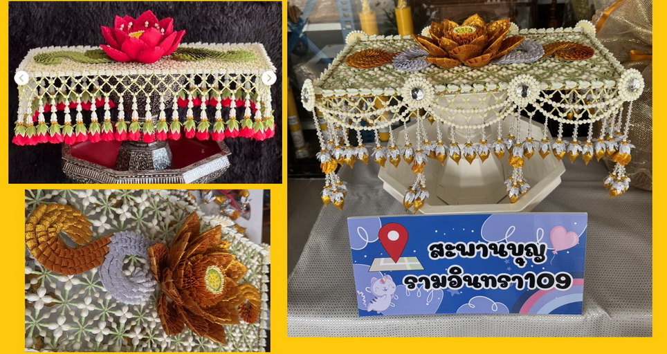 ครอบไตรดอกไม้ งานวิจิตรสวยงาม งานละเอียด สะพานบุญ 089-6891465
