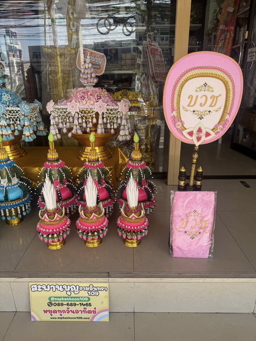 สินค้าสวยๆ สั่งทำ สีน้ำเงิน ตาลปัตร ย่าม สัปทน หมอนอิง สะพานบุญ เครื่องบวชพรีเมี่ยม กฐินสุดหรู