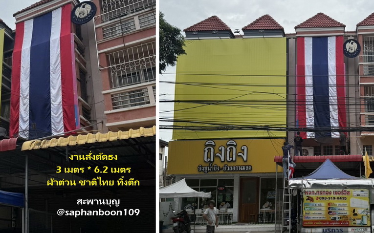 รวมภาพธงทิ้งตึก และ ธงชาติไทย ขนาดใหญ่ๆ สะพานบุญ