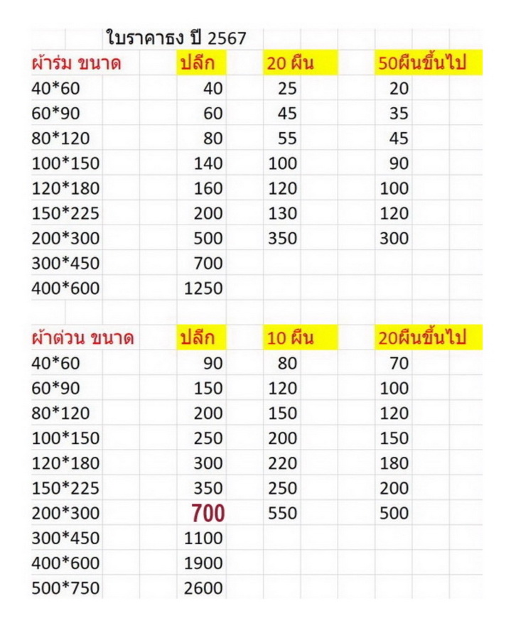 ราว 10 เส้น 1800.- เส้นละ 15 เมตร เป็นธงผ้า 20*30 ซ.ม.