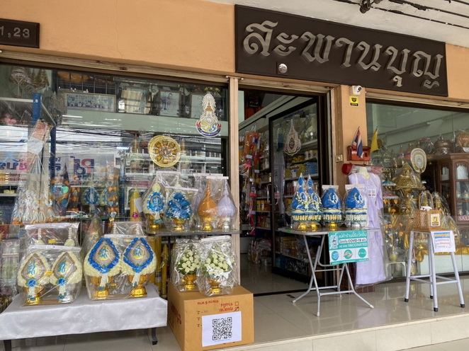 ร้านสะพานบุญ ขายเครื่องบวชพระใหม่ คุณภาพดี มีมาตรฐาน มีบริการจัดส่งทั่วไทย สามารถเรียกแกร๊ปมารับได้ ลาล่ามูฟไลน์แมนได้ หรือ ส่ง EMS ได้ทั่วไทย ผ้าไตรของที่ร้าน ขายสินค้าดีมีคุณภาพ ราคาโปร่งใสจริงใจ ไม่หมุนเวียนวัด การันตี โดย เจ้าของร้าน สามารถชมรีวิวจากลูกค้าได้ทั้ง ในกูเกิ้ล และ ในเฟสบุค รีวิวจากลูกค้าในเชิงบวกเยอะมาก มีสังฆทานสวยๆ มีบริการปักชื่อ ตาลปัตร ย่าม สัปทน ชุดนาคสวยงาม สินค้ามีหลายระดับราคาให้เลือก ตอบโจทย์ตรงจุดทุกความต้องการ ทุกงบประมาณของลูกค้า สามารถปรึกษางานบุญงานบวชได้ที่ไลน์ @saphanboon109 หน้าร้านอยู่รามอินทรา ปากซอย 109 หยุดวันอาทิตย์