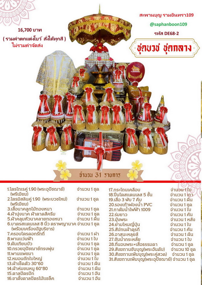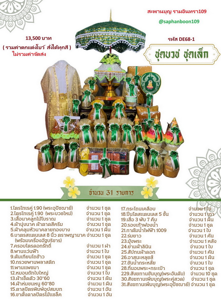 จะบวชพระใหม่ รูปภาพเพิ่มเติม สินค้าชุดบวชยกขบวน DE68-1 2 3 เครื่องบวชเล็กกลางใหญ่