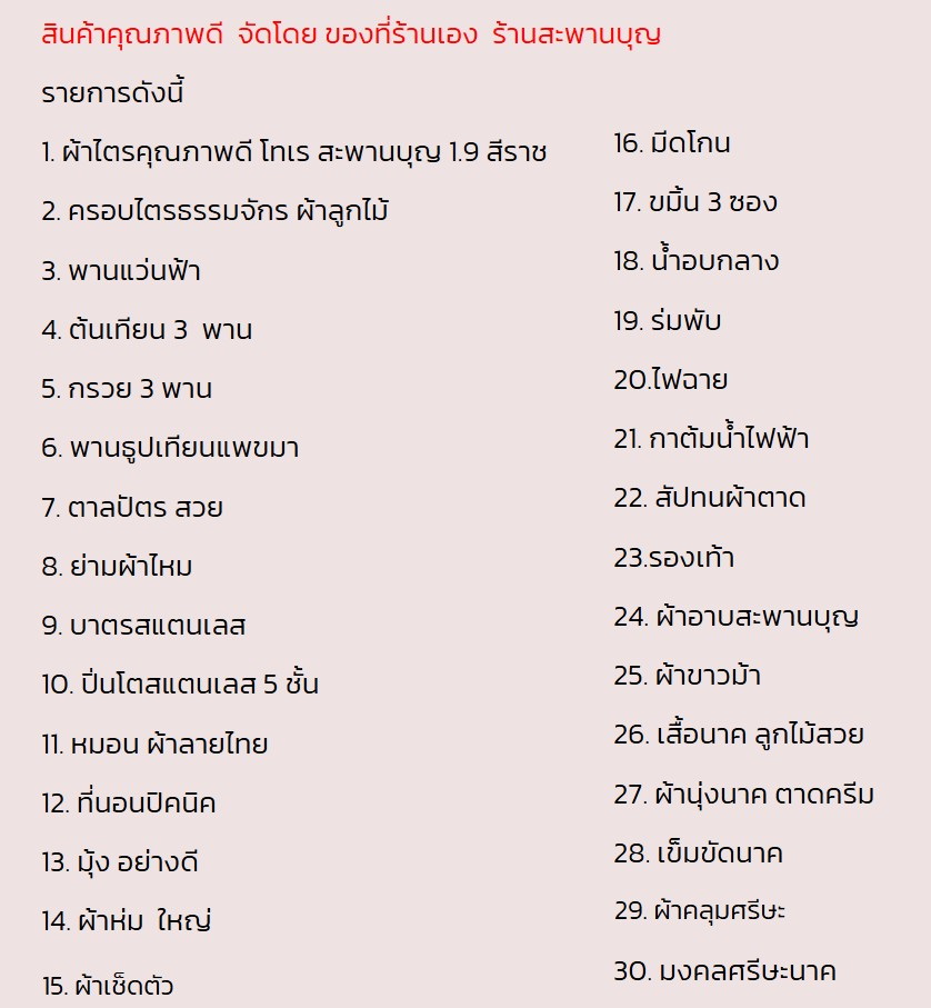 - สะพานบุญ (รามอินทรา): ราคาชัดเจน โปร่งใส บนเว็บไซต์ มีชุดบวชหลากหลายให้เลือก พร้อมบริการส่ง EMS ถึงวัด/บ้าน. ราคาดี คุณภาพดี พร้อมคำแนะนำดีดี แบบมืออาชีพ มีทั้งเครื่องบวช เครื่องกฐิน สังฆทาน พระพุทธรูป ครบถ้วน.