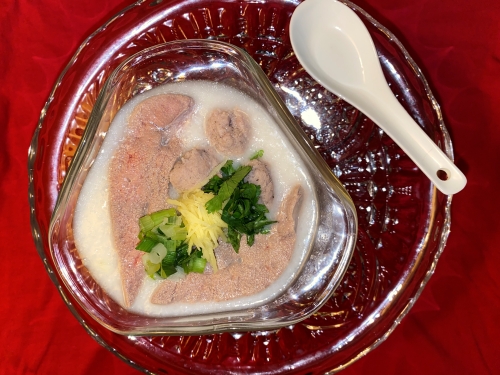 เริ่มจะหนาวๆจึงทำข้าวปั่น มันคือโจ๊กฉบับเร่งด่วน ด้วยการต้มหมูสับปรุงรสลงในน้ำเดือด เสร็จแล้วก็นำน้ำแกงนั้นมาผสมข้าวสวยที่เหลือ แล้วใส่เครื่องปั่น ใส่เกลือ ปรุงรสนิดหน่อย ลวกตับ ซอยขิง ต้นหอม ผักชีลงไป รวดเร็วว่องไว ขอให้เจริญอาหารค่ะ