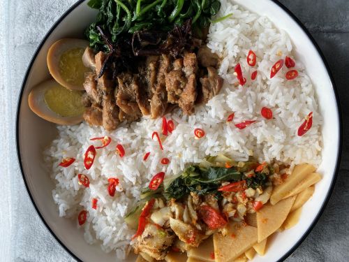 วันนี้จัดเมนูคู่ แกงส้มหน่อไม้-ปลาย่างที่ทำไว้วันก่อน กับหมู-ไก่-ไข่พะโล้ ที่ทำไว้หม้อใหญ่ ใส่ผักโขมเป็นเมนูสุดท้ายของปีนี้ เวลาที่เหลือจะได้ไม่ต้องคิดเรื่องทำกับข้าวอีกต่อไป กินซ้ำกินซากลากไปให้ถึงสิ้นปี ทำน้ำลิ้นจี่ปั่น ตกแต่งด้วยใบสะระแหน่ที่เหลือจากการทำหมูย่างน้ำตก ยังมีเหลืออีกหลายใบ ว่าจะเก็บไว้ใส่ยำปลากระป๋องเป็นเมนูต้อนรับปีใหม่ เพราะปีนี้งบประมาณด้านอาหารหมดไปแล้ว สุขสันต์ปีใหม่ล่วงหน้าแด่ทุกท่านค่ะ สู้ต่อไปๆๆๆๆๆๆ (มีเอ็คโค่เหมือนโฆษณายาชูกำลัง)