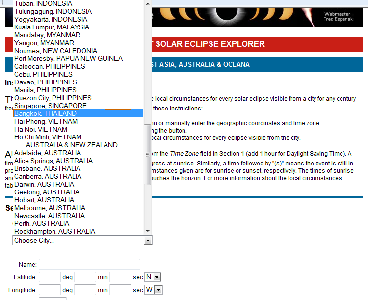 มาคำนวณสุริยุปราคาผ่านเว็ป nasa กันเถอะ