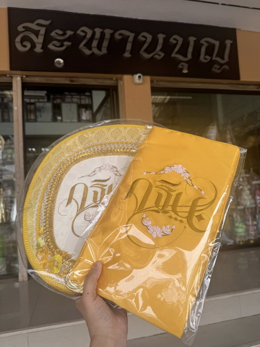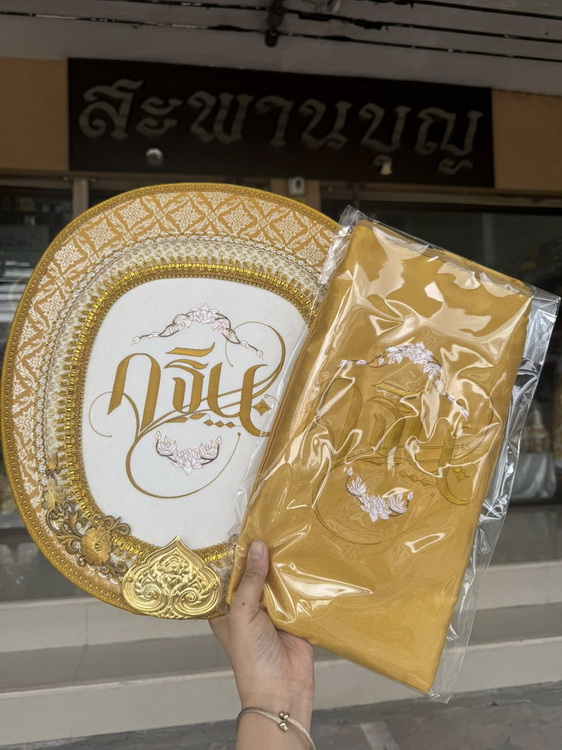 ตาลปัตร ย่าม ปี 2568 ร้านสะพานบุญ รับปักตาลปัตร ย่าม หมอนอิง งานบวช งานกฐิน
