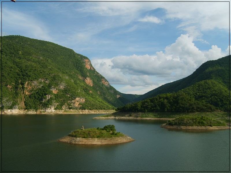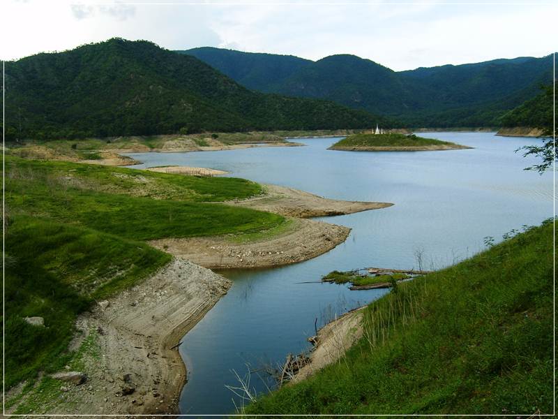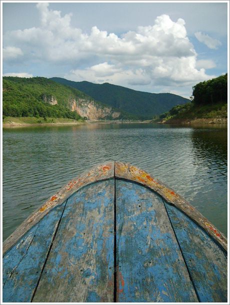 แก่งสร้อย พระธาตุกลางเขื่อนภูมิพล ทำบุญเข้าพรรษาที่วัดพระธาตุแก่งสร้อย ... พระธาตุกลางอ่างเก็บน้ำเขื่อนภูมิพล 40 กม.จากท่าแพแก่งก้อ หนทางเดียวที่จะไปถึง คือ นั่งเรือ 2ชม. และราคาที่มหาโหด บุกป่า ฝ่าสายลมฝน พาชมห้วงนทีมหรรณพ อันกว้างใหญ่ และทิวทัศน์ของผืนป่า ผาเขาที่สูงชัน ........ ที่นี่ แก่งสร้อย 14.30 น. ผมมาถึงท่าแพแก่งก้อ ... อช.แม่ปิง อ.ลี้ จ.ลำพูน อย่างรีบเร่ง ![]() ![]() พลันรีบจ้ำอ้าวว ไปเรือนแพ เอกชน เพื่อจะเจรจา ราคานั่งเรือ " แก่งสร้อย .... ไป-กลับ วันนี้ " ![]() 15.00 น. หลังจากกดดันกันไปมาระหว่างผมกับเจ้าของเรือ เรื่องราคา ก้ตัดใจในที่สุด ไปก้ไป ... ไหนๆก้ตั้งใจมาแล้ว เรือหางยาวขนาดบรรจุ 10คน ที่วันนี้มีเพียงผมและคนเรือเท่านั้น ... ก้แล่นออกเดินทาง ![]() "มาสายไปหน่อยนะ ดูเหมือนฝนกำลังมาแล้วด้วย" คนเรือ กล่าวกับผม ... ใช่ วันนี้สายจริงๆ ตั้งใจจะมาถึงแต่เช้าแล้ว แต่ติดธุระนั่นนี่ เสียเวลาไปเรื่อยๆ กว่าจะมาถึง "ครับ" .... ผมตอบกลับไปแค่นั้น แล้วปลดปล่อยสายตาให้ทอดต่อไปบนผืนน้ำ ![]() ![]() เรือยังคงแล่นไปเรื่อยๆ ฝ่าผืนน้ำอันนิ่งสงัด ของทะเลสาบ อ่างเก็บน้ำเขื่อนภูมิพล ผ่านหุบเขา รูปร่างต่างๆ ... ![]() ![]() เรือผ่านเข้าไปห้วงน้ำ ราบเรียบและนิ่งดิ่งลึกเสียจน ไม่อาจจินตนาการได้ว่าจะมีสิ่งใดอยู่ใต้ผืนน้ำนั้นบ้าง ... ![]() ใต้ผืนน้ำแห่งนี้ อดีตคงเป็นแม่น้ำปิงอันแสนเชี่ยวกราก มีผืนป่าที่กว้างใหญ่ มีชุมชนมนุษย์อาศัย มีสัตว์ มีพืชพรรณต่างๆ อยู่มากมาย ... จนกระทั่งการมาของเขื่อน .... ![]() ทุกอย่างค่อยๆจมหายไปกับปริมาณน้ำที่เขื่อนกักเก็บไว้ได้ "50 เมตร !!" เสียงผมพูดย้ำอีกครั้งถึงความแน่ใจ หลังจากถามถึงความลึกของอ่างเก็บน้ำบนเขื่อนแห่งนี้ กับคนขับเรือ ... 16.30 น. เรือก้ได้นำผมมาถึง ... แก่งสร้อย ![]() ![]() ต่อมายุคสมัยเปลี่ยนผ่าน กองทัพพม่าเดินทางผ่านบริเวณนี้อยู่เป็นระยะ ทำให้เมืองสร้อยค่อยๆล่มสลายไป ... หลงเหลือแต่เพียงซากปรักหักพัง แห่งอดีต พร้อมกับการมาถึงของเขื่อนใหญ่ ที่ซ้ำทำให้บริเวณนี้จมหาย ไปภายใต้ผืนน้ำ ... ![]() เวลาล่วงมาในสมัย พระครูบาศรีวิชัย ก้ได้ทำการบูรณะองค์พระบรมธาตุแก่งสร้อยขึ้นใหม่บริเวณเดิมในอดีต และมีการบูรณะใหม่อีกครั้งใน ปี2537 ปัจจุบัน.... เมืองสร้อยในอดีตอยู่ใต้ผืนน้ำเบื้องล่าง 60 เมตร ![]() ลงเรือที่ อ.ลี้ จ.ลำพูน อยู่ดีๆ มาโผล่สามเงา จ.ตาก ซะแล้ว ... จากจุดนี้ล่องไป 60 กม.ก้ถึงตัวเขื่อนภูมิพลพอดี ![]() องค์พระธาตุแก่งสร้อย ... ![]() ![]() ![]() จากจุดนี้สามารถมองลงไปเห็น บริเวณ เกาะแก่ง น้อยใหญ่ บริเวณแก่งสร้อยได้อย่างงดงาม ![]() ![]() หลังจากถวายปัจจัยแก่ท่านเจ้าอาวาสและสอบถามถึงป