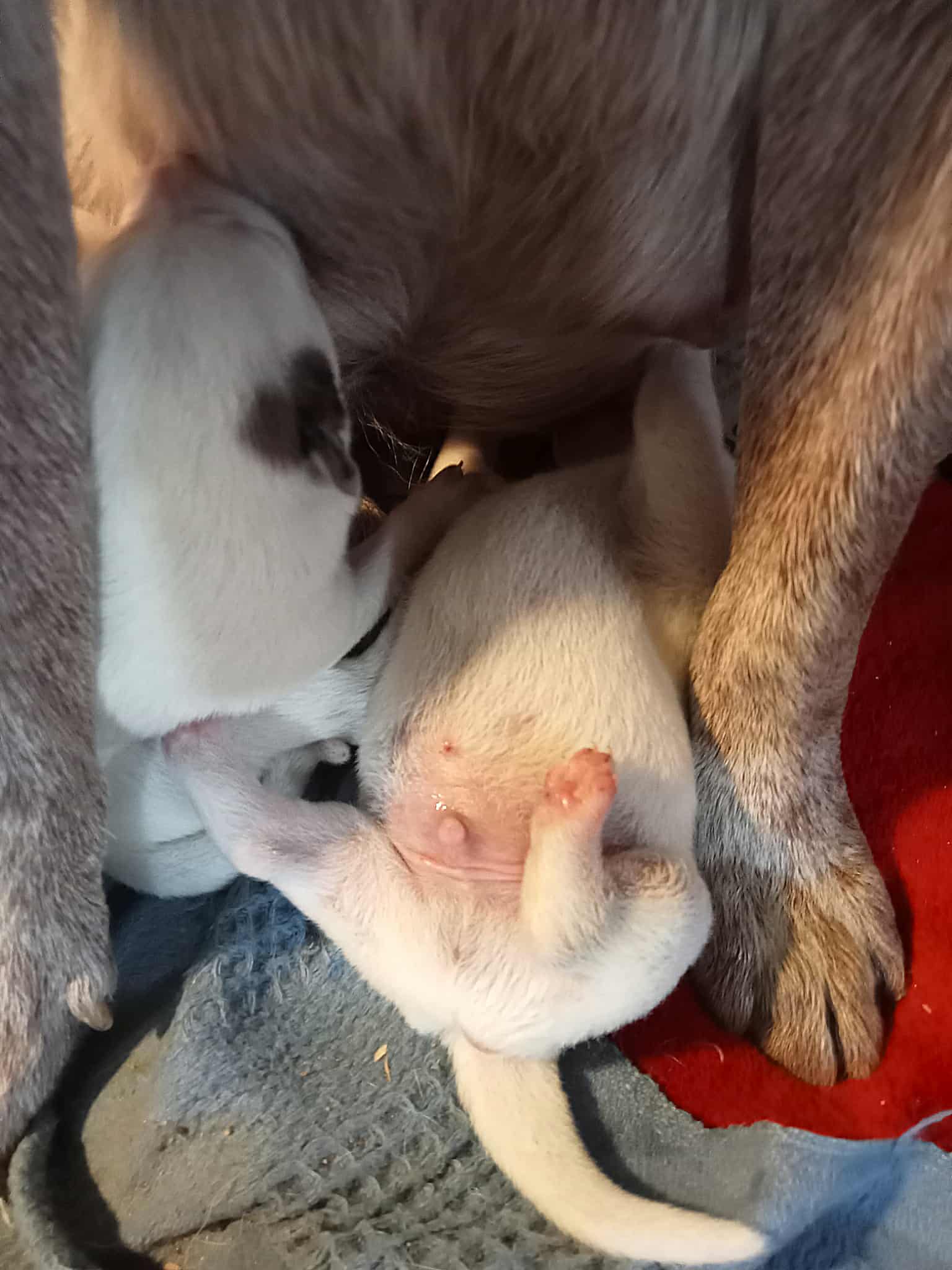 ตอนแรก Veterian  บอกมี 4 ตัว   ผลปรากฎว่า 7 ตัวจ้า เป็นผู้ชาย 6 ผู้หญิง 1 Mami Cola ปลอดภัยแข็งแรงดี ให้นมเบบี้เป็น ค่อยยังชั่วหน่อย แต่ก็ยังกระโดด ไปมาทับขาลูกบ้าง ต้องคอยจับ เด็กๆ ปลอดภัยกินนมเก่ง