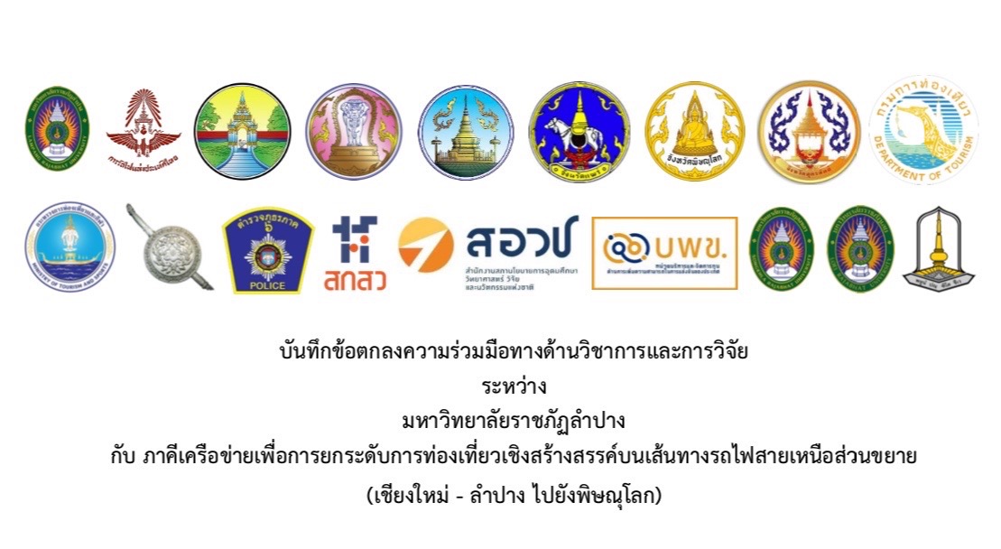สำนักงานสภานโยบายการอุดมศึกษา วิทยาศาสตร์ วิจัยและนวัตกรรมแห่งชาติ (สอวช.) โดย หน่วยบริหารและจัดการทุนด้านการเพิ่มความสามารถในการแข่งขันของประเทศ (บพข.) สำนักงานคณะกรรมการส่งเสริมวิทยาศาสตร์วิจัยและนวัตกรรม (สกสว.) ภายใต้กองทุนส่งเสริมวิทยาศาสตร์ วิจัยและนวัตกรรม (ววน.) ร่วมลงนามบันทึกข้อตกลงความร่วมมือทางด้านวิชาการและการวิจัยระหว่าง มหาวิทยาลัยราชภัฏลำปาง การรถไฟแห่งประเทศไทย การท่องเที่ยวแห่งประเทศไทย และภาคีเครือข่ายรวม 22 หน่วยงาน