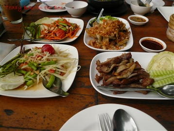 ตอนนั้นรู้สึกรักพ่อค้าสาวคนนี้ขึ้นมาทันที เธอใส่ใจลูกค้าเธอขนาดนั้น แล้วก็ขำท่าทางกระตุ้งกระติ้ง สบัดสบิ้ง เลยนึกสนุกตอแยเธอต่อ ถามว่าแล้วทำอะไรให้กินได้ที่ไม่ใส่พริก ไม่ใส่กระเทียม เธอเลยตำมะม่วงมาให้แทน รสชาติจัดจ้าน เป็นกับแกล้มที่เริดมากสำหรับคืนนั้น