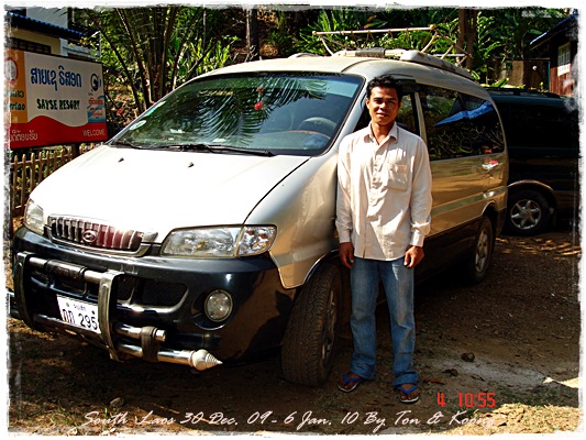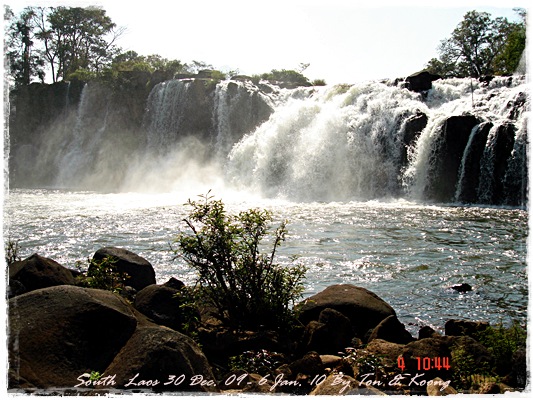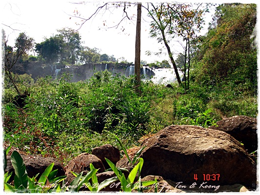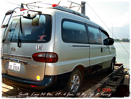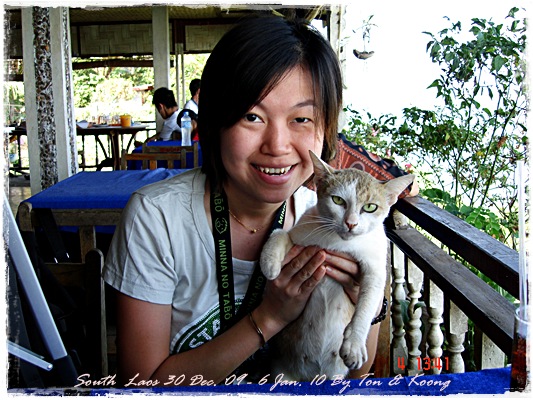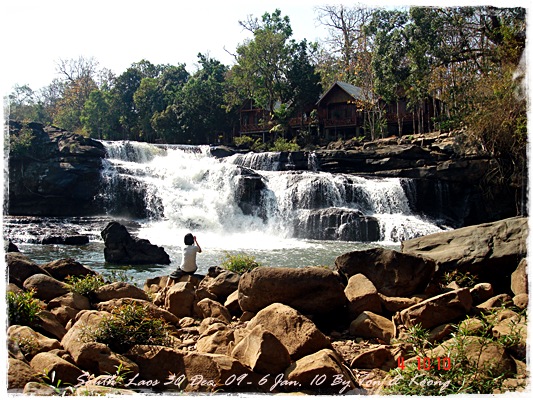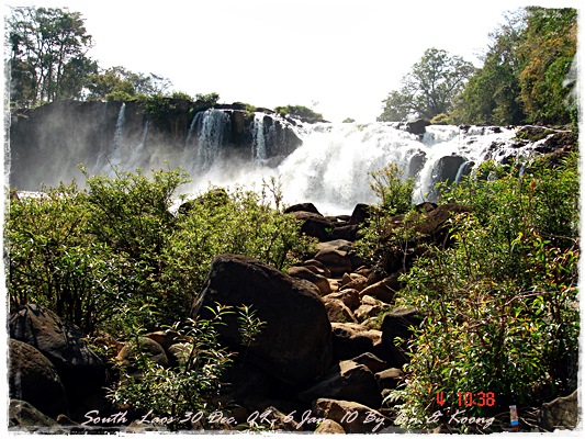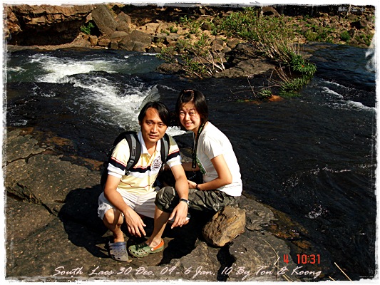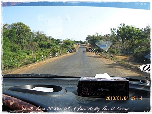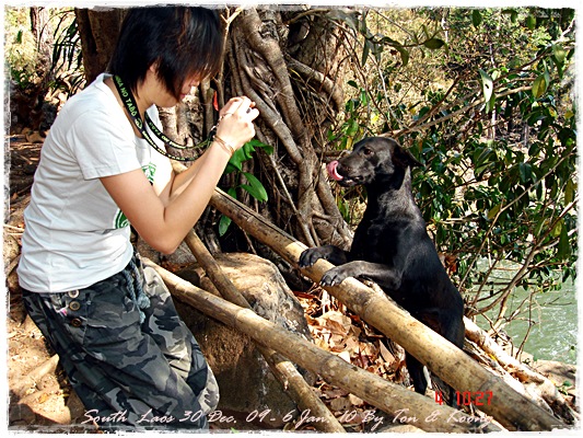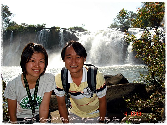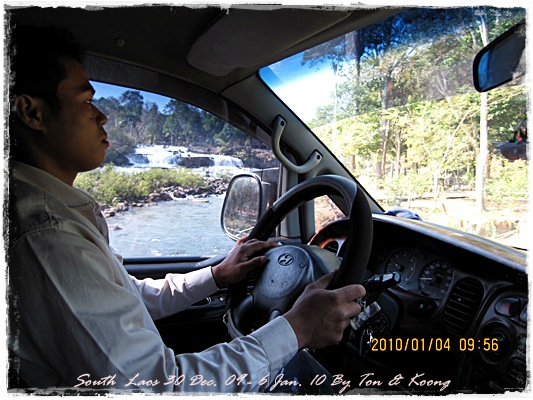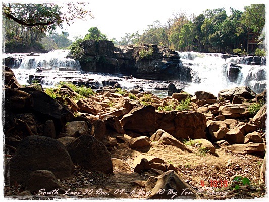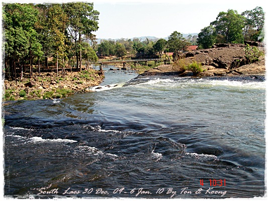 Trips วันนี้ ผมกับแฟนค่อนข้างสบาย เพราะได้ ติดต่อรถเอาไว้ครับ....ราคาค่ารถ 1,000 บาท น้ำมันตังหาก นะครับ...(ราคาอาจจะมีขึ้น หรือ ลง แล้วแต่สถานการณ์นะครับ)ประมาณ 9 โมงเช้า... รถที่ ติดต่อเอาไว้เมื่อคืนมารับ เป็นรถตู้ฮุนได ... พี่คนขับชื่อบี...ที่พี่จรัญส่งมารับเราไปเที่ยว (จรัญ โคตรสมบัติ 08-7000-5072 E mail happyworld56@hotmail.com )*** คุณจรัญ เคยทำงานกับ คุณลงวิมล เชื่อถือได้ครับ ซึ่งหากติดต่อโดยตรงไม่ได้ ก็ลองติดต่อผ่านทาง คุณน้าเมธา ตาดผาส้วมก็ได้นะครับ เขาเป็นเพื่อนกัน ***วันนี้ โปรแกรม เที่ยวของผมคือ ตาดเลาะ และ ปราสาทวัดพูที่แรกที่พี่บีพาไปคือ น้ำตกตาดเลาะ ระยะทางค่อนข้างห่างจาก ตาดผาส่วมมากเลยครับ.... เป็นทางที่จะไป เมืองสาละวัน...ตาดเลาะเป็นน้ำตกที่เกิดจากสายน้ำเซเซดไหลลัดเลาะผ่านหมู่บ้านลงสู่แอ่งน้ำเบื้องล่างชาวบ้านจึ่เรียกว่า ตาดเลาะ เป็นน้ำตกสายหนึ่งที่มีการผลิตกระแสไฟฟ้าเพื่อใช้ในลาว และ จำหน่ายกระแสไฟฟ้าข้ามมาเมืองไทย ตัวน้ำตกสูง 10 เมตร จุดเด่นอยู่ที่สายน้ำที่ไหลผ่านชั้นของตัวน้ำตกลดหลั่นสู่แอ่งน้ำขนาดใหญ่เบื้องล่าง และ สามารถเดินชึ้นไปชมน้ำตกตาดรังซึ่งเป็นน้ำตกที่อยู่ด้านบนของตาดเลาะได้อีกด้วยออกเดินทางกันเลยครับ.....ถนนค่อนข้างโล่ง.... ข้างหน้าเป็นสะพานข้ามห้วยเล็กๆ....ผมก็ไม่เข้าใจว่าทำไม ถึงสร้างเล็กจัง รถผ่านได้ทีละคัน ...... หากมาเร็วทั้ง 2 ฝั่ง ก็อันตรายครับ 2 ปีก่อน ตอนไปเที่ยววังเวียง เจอรถ บรรทุกชนกับรถทัวร์ คาสะพานอยู่เสียเวลาไปเป็นชั่วโมงๆ ถึงจะเครียรถออกได้....ถ้าหากเอารถไปเอง ก็ต้องระวังนะครับ อย่าขับเร็วมาก เพราะ ตำรวจจะจับ และ อาจจะเกิดอุบัติเหตุด้วย เพราะ ถนนในลาว ยังกะ สวนสัตว์เปิด...มีทั้ง วัว แกะ หมู เป็ดไก่.... เคยเจอแม่หมู พาลูกหมู วิ่งข้ามถนนแล้วเสียวแทน แต่ถ่ายไม่ทันมัวแต่ลุ้น....ใกล้ถึงแล้ว...ตาดเลาะ อยู่ทางซ้ายมือของพี่บี..ถึงแล้วครับ ตาดเลาะ .... ทำใจนิสสส นะครับ คนถ่ายฝีมือมีแค่นี้ ที่ตาดเลาะนี่มีบ้านพักให้พักด้วยนะครับ ย้อนแสงซักรูป...หุหุหุหลังจากนั้น ก็เดินเลาะขึ้นมาทางด้านขวามือ...มาถ่ายข้างบนต่อ...มีแขกมาเยี่ยมเราด้วย....ขี้เล่นเหมือนกันนะเนี้ยเจ้ามืด...(ตั้งชื่อให้มันเดี๋ยวนั้นเลยคิดว่ามันคงชอบ)หน้าตามันฮาดี....อยากรู้อยากเห็น...มันคือหมาน้ำตก น้ำตกตาดเลาะจากมุมบน....นี่ขนาดน้ำน้อยนะครับ...ถ้าน้ำมากจะสวยกว่านี้เยอะ...สะพานที่เราข้ามมา..ถ้าน้ำมาแรงๆ กระโดดลงตรงนี้ กี่นาที จะใช้เวลาไปถึงสะพาน.... เอ๊ะ!!!...หรือ กระโดดลงตรงนี้ ไปโผล่อีกที ชาติหน้าแหงๆ แล้วพี่บี ก็ขับรถขึ้นมารับเราไป น้ำตกตาดรัง ซึ่ง อยู่ด้าน