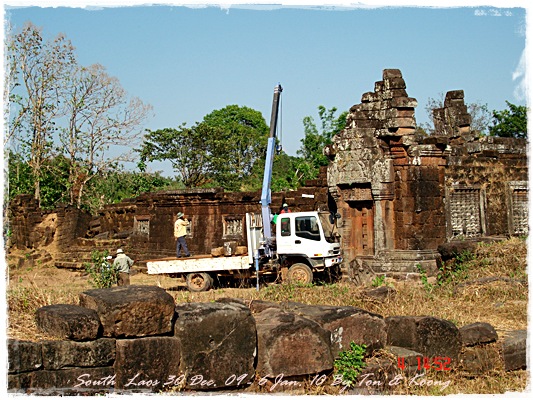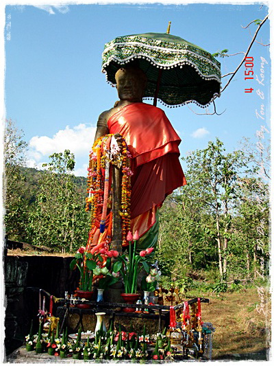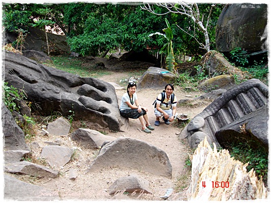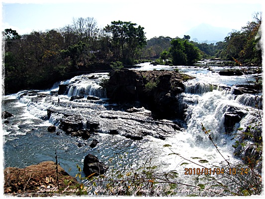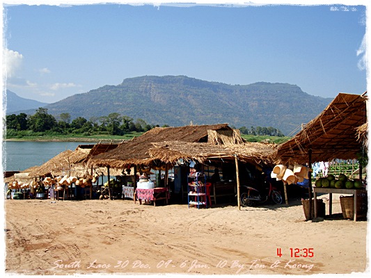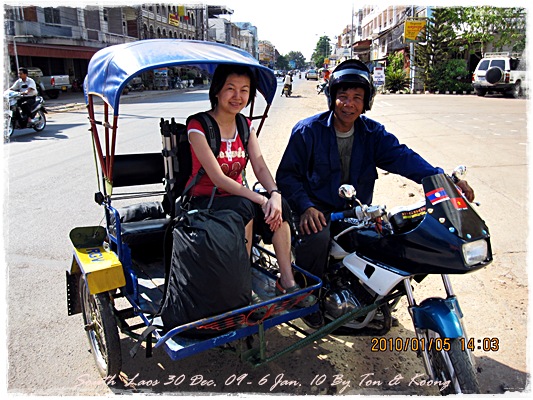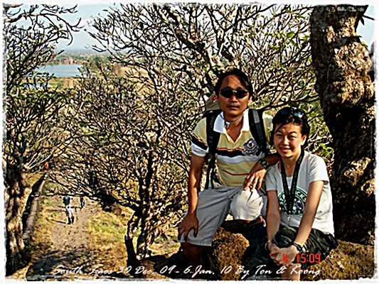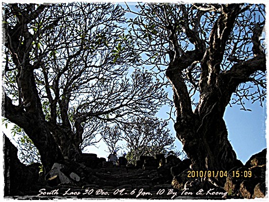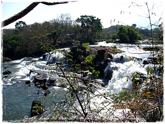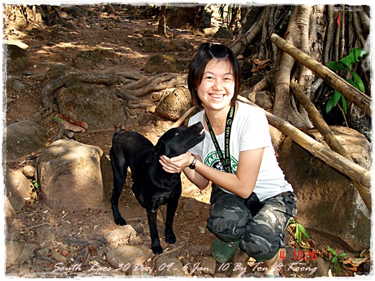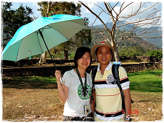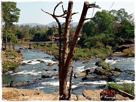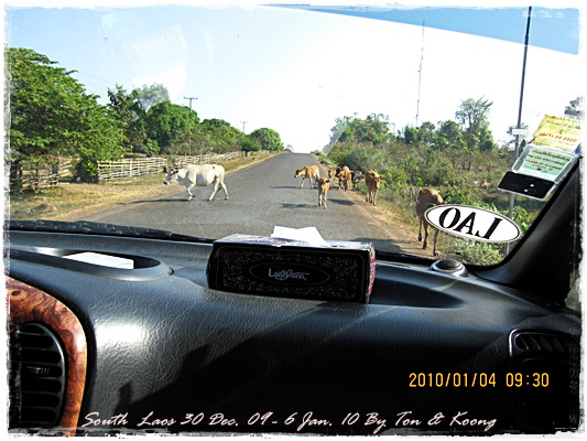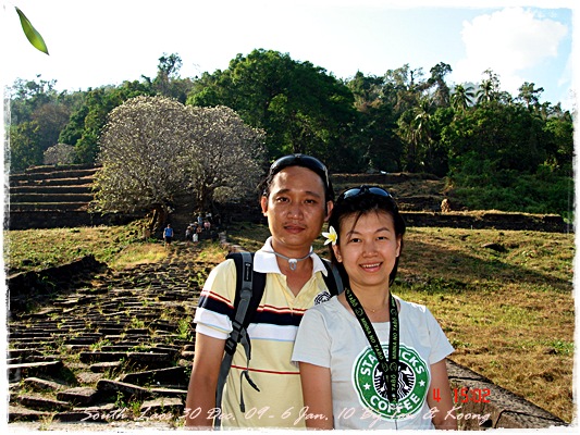 Trips วันนี้ ผมกับแฟนค่อนข้างสบาย เพราะได้ ติดต่อรถเอาไว้ครับ....ราคาค่ารถ 1,000 บาท น้ำมันตังหาก นะครับ...(ราคาอาจจะมีขึ้น หรือ ลง แล้วแต่สถานการณ์นะครับ)ประมาณ 9 โมงเช้า... รถที่ ติดต่อเอาไว้เมื่อคืนมารับ เป็นรถตู้ฮุนได ... พี่คนขับชื่อบี...ที่พี่จรัญส่งมารับเราไปเที่ยว (จรัญ โคตรสมบัติ 08-7000-5072 E mail happyworld56@hotmail.com )*** คุณจรัญ เคยทำงานกับ คุณลงวิมล เชื่อถือได้ครับ ซึ่งหากติดต่อโดยตรงไม่ได้ ก็ลองติดต่อผ่านทาง คุณน้าเมธา ตาดผาส้วมก็ได้นะครับ เขาเป็นเพื่อนกัน ***วันนี้ โปรแกรม เที่ยวของผมคือ ตาดเลาะ และ ปราสาทวัดพูที่แรกที่พี่บีพาไปคือ น้ำตกตาดเลาะ ระยะทางค่อนข้างห่างจาก ตาดผาส่วมมากเลยครับ.... เป็นทางที่จะไป เมืองสาละวัน...ตาดเลาะเป็นน้ำตกที่เกิดจากสายน้ำเซเซดไหลลัดเลาะผ่านหมู่บ้านลงสู่แอ่งน้ำเบื้องล่างชาวบ้านจึ่เรียกว่า ตาดเลาะ เป็นน้ำตกสายหนึ่งที่มีการผลิตกระแสไฟฟ้าเพื่อใช้ในลาว และ จำหน่ายกระแสไฟฟ้าข้ามมาเมืองไทย ตัวน้ำตกสูง 10 เมตร จุดเด่นอยู่ที่สายน้ำที่ไหลผ่านชั้นของตัวน้ำตกลดหลั่นสู่แอ่งน้ำขนาดใหญ่เบื้องล่าง และ สามารถเดินชึ้นไปชมน้ำตกตาดรังซึ่งเป็นน้ำตกที่อยู่ด้านบนของตาดเลาะได้อีกด้วยออกเดินทางกันเลยครับ.....ถนนค่อนข้างโล่ง.... ข้างหน้าเป็นสะพานข้ามห้วยเล็กๆ....ผมก็ไม่เข้าใจว่าทำไม ถึงสร้างเล็กจัง รถผ่านได้ทีละคัน ...... หากมาเร็วทั้ง 2 ฝั่ง ก็อันตรายครับ 2 ปีก่อน ตอนไปเที่ยววังเวียง เจอรถ บรรทุกชนกับรถทัวร์ คาสะพานอยู่เสียเวลาไปเป็นชั่วโมงๆ ถึงจะเครียรถออกได้....ถ้าหากเอารถไปเอง ก็ต้องระวังนะครับ อย่าขับเร็วมาก เพราะ ตำรวจจะจับ และ อาจจะเกิดอุบัติเหตุด้วย เพราะ ถนนในลาว ยังกะ สวนสัตว์เปิด...มีทั้ง วัว แกะ หมู เป็ดไก่.... เคยเจอแม่หมู พาลูกหมู วิ่งข้ามถนนแล้วเสียวแทน แต่ถ่ายไม่ทันมัวแต่ลุ้น....ใกล้ถึงแล้ว...ตาดเลาะ อยู่ทางซ้ายมือของพี่บี..ถึงแล้วครับ ตาดเลาะ .... ทำใจนิสสส นะครับ คนถ่ายฝีมือมีแค่นี้ ที่ตาดเลาะนี่มีบ้านพักให้พักด้วยนะครับ ย้อนแสงซักรูป...หุหุหุหลังจากนั้น ก็เดินเลาะขึ้นมาทางด้านขวามือ...มาถ่ายข้างบนต่อ...มีแขกมาเยี่ยมเราด้วย....ขี้เล่นเหมือนกันนะเนี้ยเจ้ามืด...(ตั้งชื่อให้มันเดี๋ยวนั้นเลยคิดว่ามันคงชอบ)หน้าตามันฮาดี....อยากรู้อยากเห็น...มันคือหมาน้ำตก น้ำตกตาดเลาะจากมุมบน....นี่ขนาดน้ำน้อยนะครับ...ถ้าน้ำมากจะสวยกว่านี้เยอะ...สะพานที่เราข้ามมา..ถ้าน้ำมาแรงๆ กระโดดลงตรงนี้ กี่นาที จะใช้เวลาไปถึงสะพาน.... เอ๊ะ!!!...หรือ กระโดดลงตรงนี้ ไปโผล่อีกที ชาติหน้าแหงๆ แล้วพี่บี ก็ขับรถขึ้นมารับเราไป น้ำตกตาดรัง ซึ่ง อยู่ด้าน