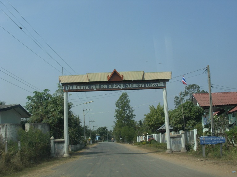 จากถนนสาย พิมายชุมพวง ทราบว่าต้องเลี้ยวขวา
