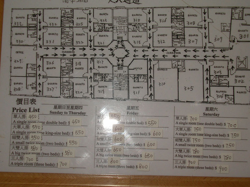 ราคาค่าที่พักที่แปะไว้ตรงประตูห้องค่ะ ตอนนั้นพักห้อง 326 เป็นเตียงใหญ่ (อยากได้เตียงเล็กมากกว่า จะได้ราคาย่อมเยากว่านี้)
