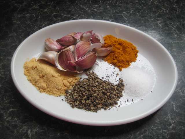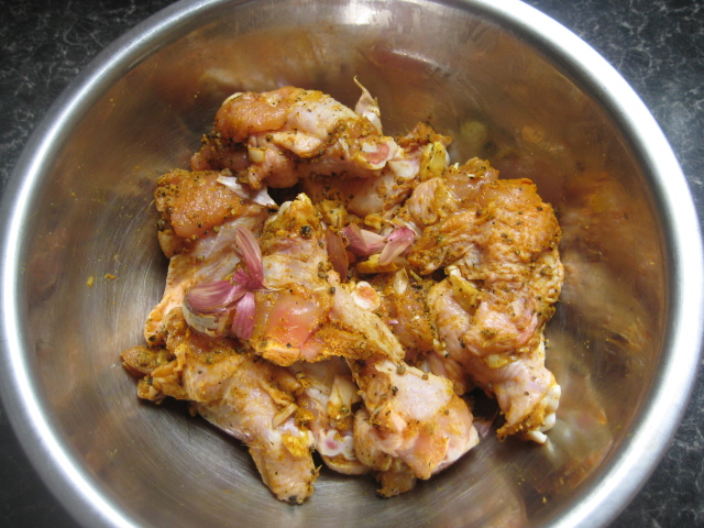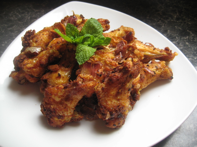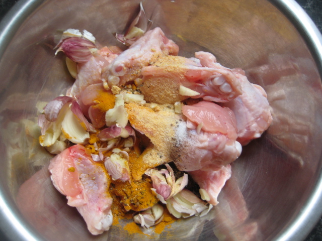 วิธีทำ โขลกกระเทียมให้พอแหลก ตักลงใส่ในชามปีกไก่ พร้อมกับพริกไทย กระเทียมป่น ผงขมิ้น เกลือป่น ผงปรุงรสไก่ น้ำตาลทรายเล็กน้อย เคล้าให้เข้ากับปีกไก่ นวดและหมักในตู้เย็นประมาณ 30-45 นาที