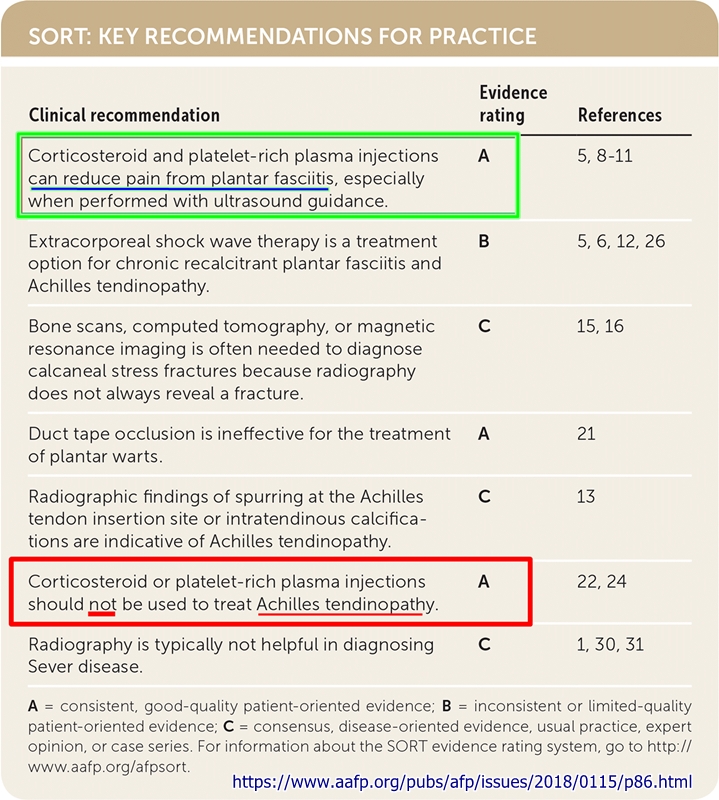 ประเด็นที่อยากจะฝาก ทั้งผู้ป่วย(ญาติ)และแพทย์ ก็คือ ๑. อาการปวดและมีก้อน คือ กระดูกส้นเท้างอก (Haglund's heel) ๒. เดาว่า น่าจะฉีดยาสเตียรอยด์เฉพาะที่ ซึ่งไม่ค่อยได้ผลและมีความเสี่ยงที่จะทำให้เกิด เส้นเอ็นร้อยหวายขาดได้ ไม่แนะนำให้ฉีด นะครับ การรักษา เน้นที่การดูแลตนเองบริหาร ยาช่วยบรรเทาอาการ ถ้าไม่ปวดมาก ไม่ต้องใช้ยาก็ได้ ส่วนก้อน มักจะไม่หายแต่ไม่กลายเป็นมะเร็งกระดูก ข้อสังเกต เกี่ยวกับ การฉีดยาสเตียรอยด์เฉพาะที่ - เส้นเอ็นฝ่าเท้าอักเสบ (กรอบสีเขียว) .. แนะนำให้ฉีด เพื่อบรรเทาอาการปวด - เส้นเอ็นร้อยหวายอักเสบ (กรอบสีแดง) .. " ไม่แนะนำ " ให้ฉีด (เนื่องจากอาจทำให้เกิดเส้นเอ็นร้อยหวายขาดได้) Heel Pain: Diagnosis and Management https://www.aafp.org/pubs/afp/issues/2018/0115/p86.html Diagnosing Heel Pain in Adults https://www.aafp.org/pubs/afp/issues/2004/0715/p332.html Heel pain: a practical approach https://www.racgp.org.au/afp/2015/march/heel-pain-a-practical-approach Plantar Heel Pain https://www.physio-pedia.com/Plantar_Heel_Pain Plantar Fasciitis | Plantar Fasciopathy | Diagnosis & Treatment https://www.physiotutors.com/conditions/plantar-fasciitis/ Heel Pain in Runners More than Just Plantar Fasciitis! https://www.physiotutors.com/heel-pain-in-runners/ Tools to speed your heel pain diagnosis https://ma1.mdedge.com/content/tools-speed-your-heel-pain-diagnosis ............................... กลุ่มอาการปวดส้นเท้า เอ็นร้อยหวายอักเสบ ถุงน้ำเอ็นร้อยหวายอักเสบ กระดูกส้นเท้างอก(Haglund's heel) https://www.bloggang.com/viewblog.php?id=cmu2807&date=24-07-2008&group=5&gblog=34 เส้นเอ็นร้อยหวาย...ขาด [ Achilles tendon ruptures ] https://www.bloggang.com/viewblog.php?id=cmu2807&date=21-06-2009&group=6&gblog=29 เส้นเอ็นฝ่าเท้าอักเสบ ( รองช้ำ ) https://www.bloggang.com/viewblog.php?id=cmu2807&date=23-07-2008&group=5&gblog=33 โดย: หมอหมู