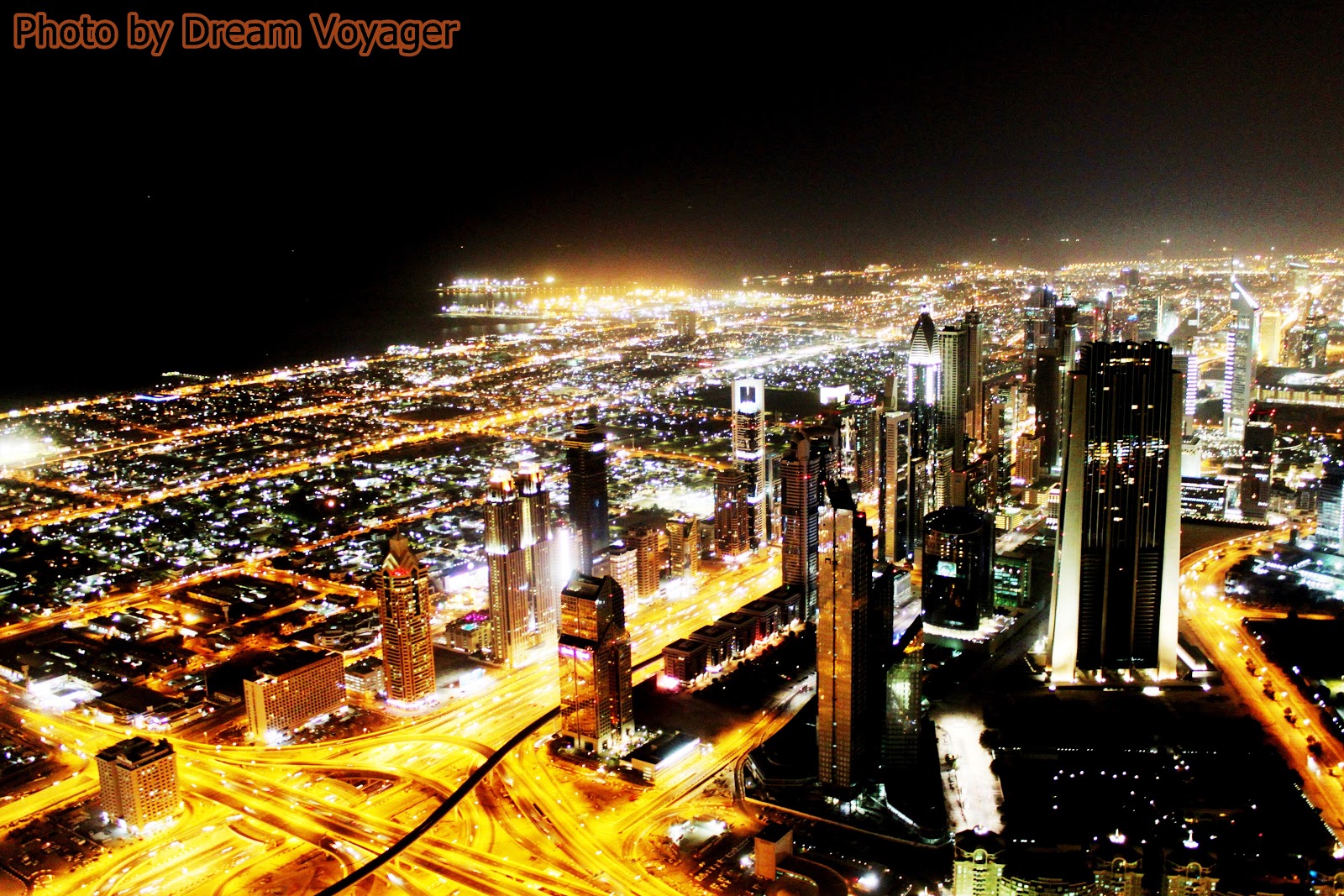 ทิ้งท้ายด้วยวิวเมืองดูไบยามรัตติกาล ความมืดทำให้ไม่เห็นทัศนียภาพฝั่งทะเลทรายได้ เนื่องจากไม่มีแสงไฟ ก็เลยมีแต่วิวฝั่งเมืองให้ชม ภาพแสงไฟเมืองดูไบยามค่ำคืนก็สวยดีเหมือนกัน