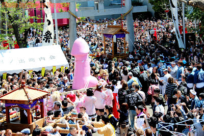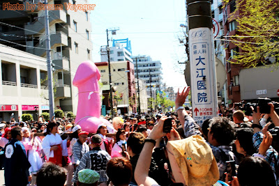 Kanamara Matsuri: เทศกาลแห่กาปู๋เหล็ก [18+] คำเตือน: บทความนี้มีวัตถุประสงค์เพื่อนำเสนอข้อมูลด้านการท่องเที่ยวทางวัฒนธรรมประเพณี แต่อาจมีเนื้อหาและรูปภาพบางส่วนเกี่ยวพันเรื่องทางเพศที่อาจไม่เหมาะสมสำหรับเด็กและเยาวชน โปรดใช้วิจารณญาณ เป็นครั้งแรกที่เขียนบทความล่อแหลม ผมขอย้ำว่าต้องการนำเสนอแง่มุมทางด้านวัฒนธรรมประเพณีพื้นเมืองเป็นหลักนะครับ ถึงแม้เนื้อหาอาจจะออกทะลึ่งนิดๆแต่ผมจะพยายามไม่ให้เลยเถิดจนเกินงาม (เรียกว่าทะลึ่งวันละนิดจิตแจ่มใส) รูปภาพที่ถ่ายติดบุคคลอื่นโดยไม่ได้รับอนุญาตและอาจทำให้เสื่อมเสียผมขอเบลอหน้า ส่วนรูปที่ไม่เบลอได้พิจารณาแล้วว่าเจ้าตัวแสดงความยินยอมให้ถ่าย เทศกาล Kanamara Matsuri (かなまら祭り) หรือที่ผมอุปโลกน์ชื่อภาษาไทยให้ว่าเทศกาลแห่กาปู๋เหล็ก เป็นเทศกาลประจำปีที่จัดขึ้นที่เมืองคาวาซากิ (川崎市) ประเทศญี่ปุ่น เทศกาลจะมีขึ้นในวันอาทิตย์แรกของเดือนเมษายน อย่างปี 2013ที่ผมไปตรงกับวันที่ 7 เมษายน แท้จริงแล้วเทศกาล Kanamara เป็นเทศกาลของศาสนาชินโต ในทางศาสนาอวัยวะเพศชายเป็นสัญลักษณ์ของความอุดมสมบูรณ์ จึงสามารถพบเห็นเทศกาลแบบเดียวกันนี้ที่วัดชินโตหลายๆที่ในญี่ปุ่น สำหรับที่เมืองคาวาซากิ เทศกาลจัดขึ้นที่วัดคานายามะ (金山神社) ซึ่งว่ากันว่าในอดีตเป็นวัดที่โสเภณีพื้นเมืองนิยมมาบนบานขอให้ปลอดภัยจากโรคติดต่อทางเพศ นอกจากนี้วัดก็ยังมีชื่อเสียงเรื่องการบนบานขอให้คลอดบุตรง่ายปลอดภัยและชีวิตสมรสที่ราบรื่น เทศกาลที่นี่จึงมีนัยเรื่องทางเพศผสมด้วย (ในบางแหล่งข้อมูลจะเรียกวัดที่จัดงานนี้ว่า Wakamiya Hachimangu Kanayama shrine) วัดคานายามะเป็นที่สถิตย์ของแท่งลึงค์เหล็กยักษ์ที่เป็นพระเอกของงาน มีตำนานปรัมปราพื้นบ้านเล่าขานกันว่าในอดีตมีหญิงสาวผู้อาภัพนางหนึ่งถูกปีศาจฟันเหล็กสิงที่อวัยวะเพศและคอยกัดน้องหนูของเจ้าบ่าวผู้โชคร้ายในคืนร่วมหอคนแล้วคนเล่า จนกระทั่งมีช่างตีเหล็กนายหนึ่งหล่อแท่งลึงค์เหล็กขึ้นมาทำให้ปีศาจที่กัดฟันหักหมดปากจนหนีออกจากร่างไป ชีวิตหญิงสาวจึงสงบสุขนับจากนั้นมา ก็เลยเป็นที่มาของการสักการะบูชาเจ้าปลัดขิกเหล็กนี่เอง แต่เดิมเทศกาลนี้เป็นเพียงเทศกาลพื้นเมืองเล็กๆ แต่ไม่กี่ปีก่อนหน้านี้มีรายการโทรทัศน์ต่างชาติมาถ่ายทำไปเผยแพร่ที่ต่างประเทศและได้รับความสนใจเป็นอย่างมาก จนปัจจุบันนี้แทบจะกลายเป็นเทศกาลนานาชาติที่มีนักท่องเที่ยวต่างชาติจำนวนมากหลั่งไหลมาร่วมงาน มีหลายคนมาด้วยคอสเพลย์เพี้ยนๆ (ปีก่อนๆมีชุดที่ดูอนาจารเกินงาม แต่ปีนี้น่าจะมีการห้ามปรามกันไว้ก่อน) 