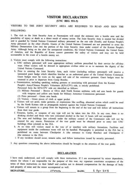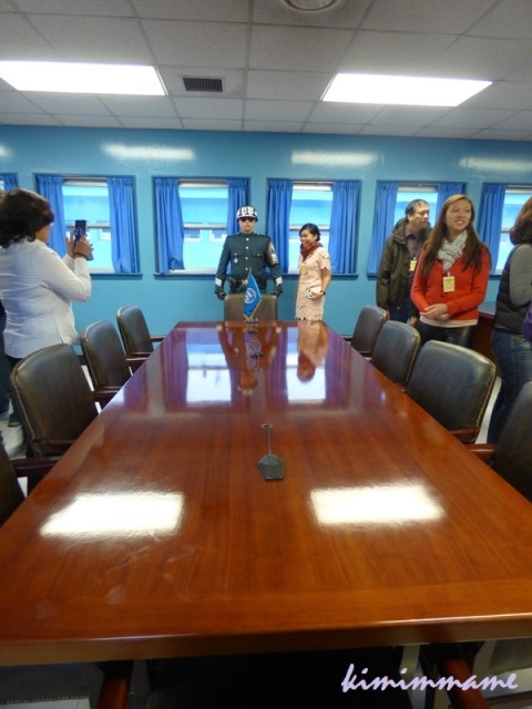 เอาเท้าแตะเกาหลีเหนือ ตอน JSA ทัวร์ ความเดิมตอนที่แล้ว หลังออกจากสถานีรถไฟโดราซานมาได้ ไกด์ก็พาเราไปมอบตัวให้กับอีกคณะนึง นัยว่าแยกกันตรงนี้แล้วเธอจงไปเสี่ยงชีวิตต่อไปกับอีกบริษัทนึงแทนนะจ๊ะ ขึ้นรถได้ เขาก็พาเราไปหม่ำกลางวันก่อน ไกด์คนใหม่เป็นเจ่เจ้น่าจะ 40+ ดูคล่องแคล่ว ช่างจำนรรจาไม่น้อย อ่อ ไอ้ทริปเกือบสี่พันบาทนี่รวมอาหารกลางวันด้วยนะจ๊ะ เป็นพุลโกกิเนื้อ ใครทานเนื้อไม่ได้ก็ควรบอกไกด์ล่วงหน้าไว้ด้วย ![]() เป็นหม้อสำหรับสองคน และเครื่องเคียงไม่อั้น แต่ไม่รวมเครื่องดื่ม สั่งแฟนต้าสับปะรดมากิน ขวดล่ะ 3,000 วอน หืมมมมมมม? สงสัยป้าจะรีบรวยชาตินี้แล้วล่ะ ราคาขนาดนี้อ่ะ - - - - - - - - - - - - - - - - - - - - - - - - - - - - - - - - - - - - - - หม่ำเสร็จ ก็ได้เวลา JSA (The Joint Security Area) Tour หรือปันมุนจอม นั่งรถไป ID check point อีกรอบ เจอทหารแซ่บหน้าเหมือนพี่เรนอีกที เพราะบริเวณนี้ห้ามถ่ายรูปโดยเด็ดขาด ถ่ายได้แค่จุดที่อนุญาตเท่านั้น ลวดหนามเต็มเบยยยยยย สักพักคนขับรถก็วิ่งไปข้างล่างก่อนกลับมาพร้อมบัตรนี้ ให้ทุกคนติดตัวไว้ ![]() (รอดชีวิตกลับมาจากที่นี่ได้ ไปซื้อเลย 208 งวดที่แล้ว กินเรียบ ขอบใจ!) UNCMAC Guest ย่อมาจาก United Nations Command Military Armistice Commission Guest แปลไทยว่า "ฉันเป็นแขกของยูเอ็น อย่ายิงฉันนะ ฉันกลัว" ใน 16 ประเทศที่ร่วมด้วยช่วยกันดูแลที่นี่ มีไตรรงค์ธงไทยปลิวไสวสวยงามสง่าอยู่ด้วยนะ เห็นอยู่แถวๆ แคมป์นะ แต่ไม่ได้ถ่ายไว้ ตรงนั้นห้ามถ่าย ชื่นใจหน่อยว่า อย่างน้อยฉันก็มาจากประเทศพันธมิตรระดับต้นๆ เคยมีทหารไทยมาประจำการที่นี่ด้วยนะ ชื่อ เสธฯ อิ๊ก (ลองหาอ่านดูได้ในพันทิปเนี่ยแหละ) แล้วก็นั่งรออยู่บนรถพักใหญ่ ก็มีนายทหาร UN ขึ้นมาตรวจพาสปอร์ตเรียงตัวอีกรอบ พี่บึ้กผิวดำชื่อว่า "ชาร์ลี" จะมาประกบรถเราตลอดเวลาทัวร์ คอยให้ความรู้เราแทนเจ่เจ้และดูแลเราๆ ด้วยนะ พอรถได้รับอนุญาตให้ไปต่อได้ ก็ไปที่ห้อง Slideshow and Briefing ก่อน เพื่ออธิบายระเบียบการเข้าเยี่ยมชม JSA ว่าต้องทำตัวแบบไหนบ้าง เช่น ห้ามใส่เสื้อสีหรือลายทหาร / ห้ามเมาเหล้า / ห้ามใส่รองเท้าแตะ / ห้ามใส่กระโปรงสั้น / ห้ามใส่กางเกงยีนส์ขาดๆ ฯลฯ และเหนือสิ่งอื่นใด มาเพื่อเซ็นใบนี้ ![]() ใบรับรองว่าหากเกิดเหตุการณ์ไม่คาดฝัน ฉันจะไม่เรียกร้องใดๆจ๊ะ แปลชัดๆ คือ ระหว่างเยี่ยมชม ถ้าเกาหลีเหนือเกิดยิงปรมาณูมา หรือบังเอิญเดินไปเหยียบกับระเบิดเอง...ตายไป ทางญาติไม่มีสิทธิ์โวยวายนะจ๊ะ ประมาณนั้น ความเสี่ยงมันอยู่ตรงจะเซ็นดีไหมนี่แหละ 555555 แต่ก็ต้องเซ็นอ่ะ ไม่เซ็นไม่ได้ไปต่อ พอเซ็นแล้ว นั่งฟังบรีฟแล้ว.....เคยดูๆ มาปกติเห็นเป็นทหารบรีฟ ไอ้นี่ก็ตั้งใจเตรียมสอบโท