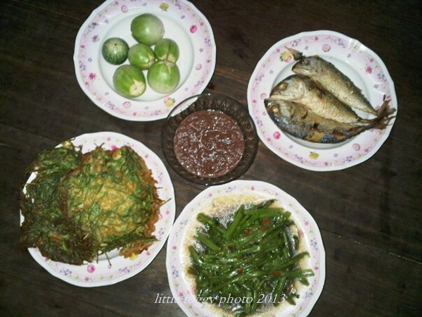 น้ำพริกกะปิ ปลาทู กินอะไรเล่าเธอ ถึงได้งามแสนงาม งามเลิศวิไล........ แหมจะมีใครมาถามแบบนี้บ้างไหมนะ หรือคงได้แค่ฝันๆเพ้อ แต่ถ้ามีใครถามก้อจะตอบอย่างไวเลยว่า กินข้าวกับน้ำพริก สิจ๊ะ ถึงได้สะได้สวย.......555เพลงโบร้าณ โบราญเนอะ เลยจะมาชาวตำน้ำพริกกินดีกว่า ![]() จัดการซอยผักบุ้ง ทอดปลาทู แล้วก้อจักการผัดผักบุ้งในกะทะที่ทอดปลาทูนั่นแหละเอาน้ำมันที่ทอดปลาทูออกให้หมดไม่ต้องล้างกะทะเอาผักบุ้งโยนลงไปพลิกไปพลิกมาพอผักบุ้งสลบก้อพร้อมกินละ แล้วก้อมาตำน้ำพริกกะปิกันแบบง่ายๆ ปอกกะเทียมกับเด็ดพริก ชอบมากน้อยก้อใส่ลงไปโขลกให้ละเอียด ใส่กะปิลงไป ผสมให้เข้ากันปรุงรสด้วยน้ำปลา น้ำมะนาว น้ำตาลทราย ใส่น้ำร้อนลงไปนิดนึงชิมรสชาติให้ถูกใจก้อพร้อมกินแล้ว ![]() จัดสำรับเสริฟ ![]() บางทีถ้าขยันหาผักหน่อยก้อได้สำรับแบบนี้ ![]() หรือแบบนี้จะว่าไปทำกินบ่อยนะคะเมนูนี้อ่ะ ![]() ตักข้าวมารอเลยค่ะ ชอบผักบุ้งจิ้มน้ำพริก