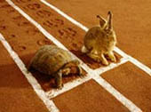 เรื่องเล่า..เต่ากับกระต่าย(ภาคพิเศษ) เจ้ากอล์ฟ ... เร่เข้ามาครับ เร่เข้ามา ในอีกไม่กี่นาทีข้างหน้านี้การแข่งขันวิ่งเร็วแห่งดงป่าพญาลมจะเริ่มต้นขึ้นแล้ว การแข่งครั้งนี้เป็นการพบกันระหว่าง ฝ่ายแดง กระต่ายซ่า ศิษย์รถเมล์เขียว เจ้าของฉายา เครื่องประหารทางเรียบ... จะพบกับฝ่ายดำ เจ้าเต่าน้อย ศิษย์ไม่มีครู เจ้าของฉายา วัยชราเรียกพ่อ ![]() อย่างที่หลายท่านเคยรู้ว่าศึกวิ่งแข่งครั้งที่แล้ว เต่าน้อยศิษย์ไม่มีครูเป็นผู้ชนะไปอย่างพลิกความคาดหมาย อันเนื่องมาจากความประมาท และชะล่าใจของกระต่ายซ่าที่ไปแอบงีบหลับข้างทางระหว่างการแข่งขัน จากวันนั้นล่วงมาวันนี้ก็ผ่านมาแล้วหลายปี กระต่ายซ่าขอท้าชิงเจ้าเต่าน้อยอีกครั้งเพื่อกู้ศักดิ์ศรีของจ้าวแห่งความเร็วคืนมา จึงทำให้มีการจัดการแข่งขันอย่างเป็นทางการครั้งนี้ขึ้น .....ขณะนี้ใกล้เวลาแล้ว ทุกท่านที่ยังไม่มีตั๋วเข้าชมให้มาซื้อที่ผมได้ ถ้าท่านไหนมีตั๋วแล้วขอให้เดินเที่ยวงานพญาลมแฟร์ไปก่อน ที่นี่มีสินค้าและของกินมากมาย รับรองว่าอดใจอีกไม่นานท่านจะได้พบการแข่งที่สนุกตื่นเต้น เร้าใจแน่นอนครับพี่น้อง คร้าบ ได้เวลาแล้วล่ะครับท่านผู้ชม ณ บัดนี้ แต๊น แต่น แต้นนน.... ขอให้ผู้เข้าแข่งทั้งสองเตรียมเข้าไปที่จุดเริ่มต้นได้แล้วครับ ขอให้เจ้าหน้าที่และกรรมการคุมการแข่งเข้าประจำจุดด้วย ส่วนผมลิงลมโฆษกของงานนี้ จะขอขึ้นขี่หลังพี่อินทรีแดงเพื่อติดตามรายงานการแข่งไปอย่างติด ๆ เลยนะครับ ![]() เข้าที่........ระวังงงงง............เตรียมตัว!!!! ปี๊ดดดดดดดดดด เสียงนกหวีดจากลิงลมดังขึ้น ฟาล์ว!! คุณกระต่ายซ่าครับ กรุณากลับเข้าที่จุดเริ่มต้นครับ ผมยังไม่ได้บอกว่า ไป เลยครับ ถ้าฟาล์วอีกครั้งคุณจะถูกปรับแพ้ทันทีเลยนะครับ เข้าที่........ระวังงงงงงงง............ไป!!!!!!! เริ่มแล้วครับการแข่งขัน ขอเสียงกองเชียร์ให้กำลังใจทั้งสองฝ่ายด้วยครับ ตอนนี้ฝ่ายเต่าน้อยขึ้นนำกระต่ายซ่าในช่วงออกสตาร์ทแล้วครับ ทางด้านกระต่ายซ่าเริ่มเพิ่มความเร็วขึ้นเรื่อยๆ หวังที่จะแซงเต่าน้อยให้ได้ในช่วงต้นทาง แต่...เต่าน้อยกลับเร่งเครื่องทิ้งห่างออกไปอีกนะยะนึงแล้วครับทุกท่าน โอ้วว..ไม่น่าเชื่อว่าเขาจะเร็วถึงเพียงนี้ ![]() ตอนนี้ใกล้จะถึงเส้นชัยแล้วครับ เต่าน้อยศิษย์ไม่มีครูทิ้งห่างกระต่ายซ่าศิษย์รถเมล์เขียวจนไม่เห็นฝุ่นเลยคร้าบพี่น้องคร้าบบ...โอ้วววพระเจ้ามันเป็นเรื่องที่เหลือเชื่อมากเลย เจ้าเต่าน้อยนำรวดเดียวตั้งแต่ต้นเกมโดยไม่ปล่อยให้กระต่ายซ่าแซงได้เลยครับ เข้าไปแล้วคร้าบบบบบบบบ!!! เต่าน้อยศิษย์ไม่มีครูเ