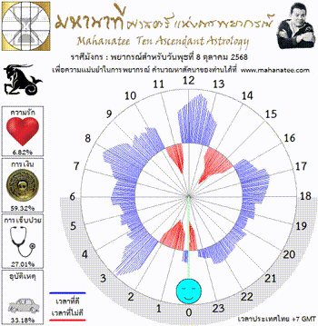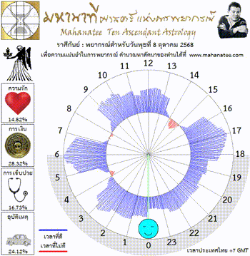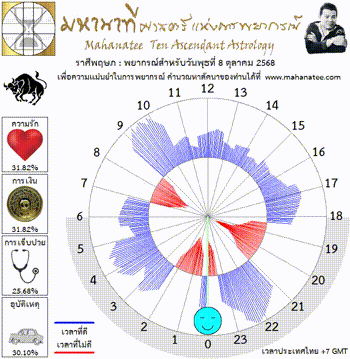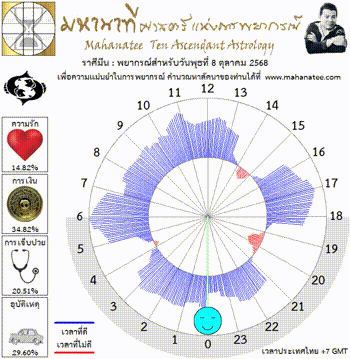 แผนภูมิและพยากรณ์ 12 ราศี สำหรับ วันพุธที่ 8 ตุลาคม 2568