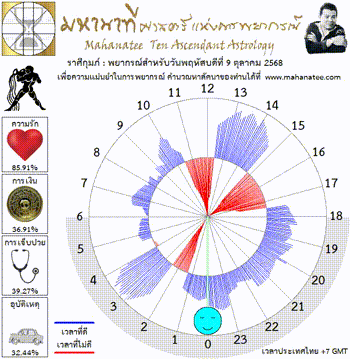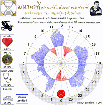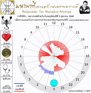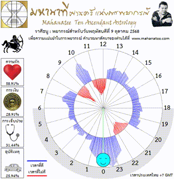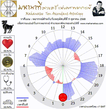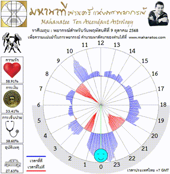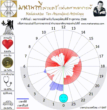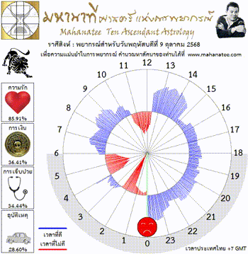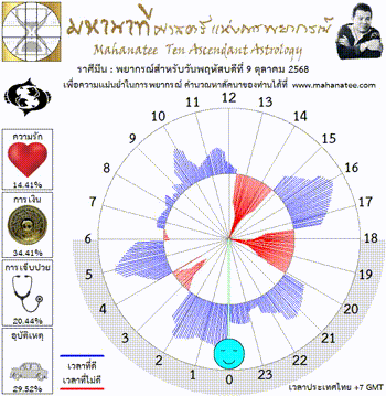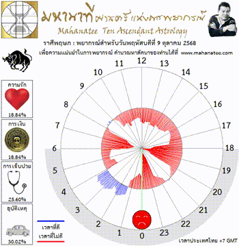 แผนภูมิและพยากรณ์ 12 ราศี สำหรับ วันพฤหัสบดีที่ 9 ตุลาคม 2568