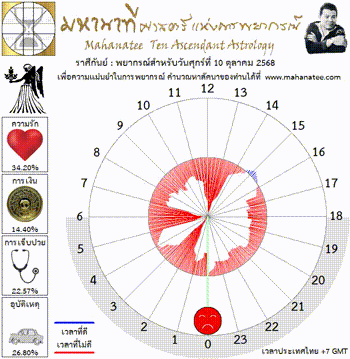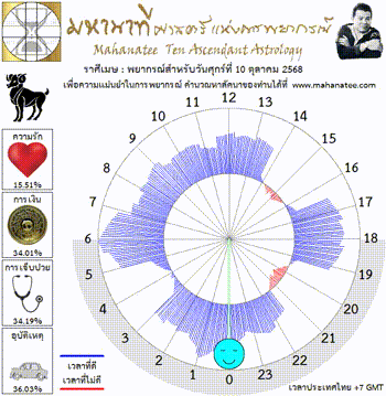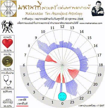 แผนภูมิและพยากรณ์ 12 ราศี สำหรับ วันศุกร์ที่ 10 ตุลาคม 2568