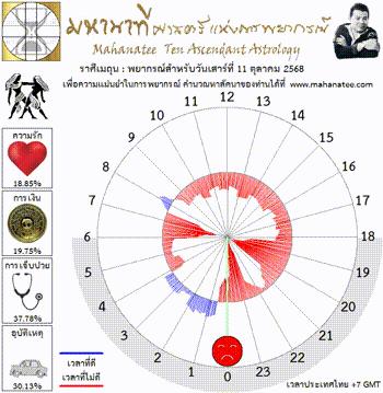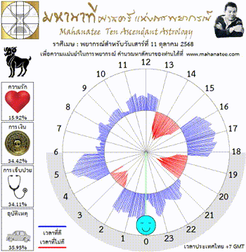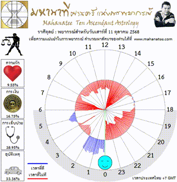 แผนภูมิและพยากรณ์ 12 ราศี สำหรับ วันเสาร์ที่ 11 ตุลาคม 2568