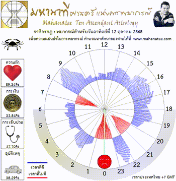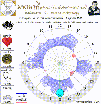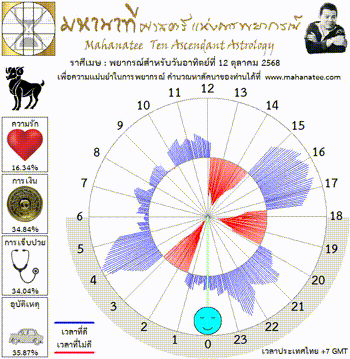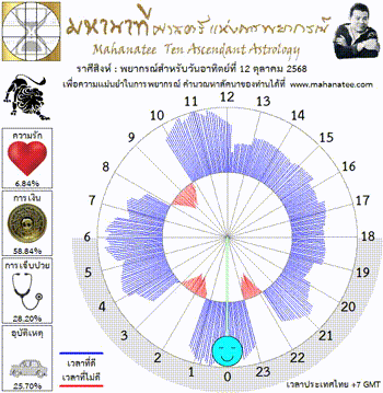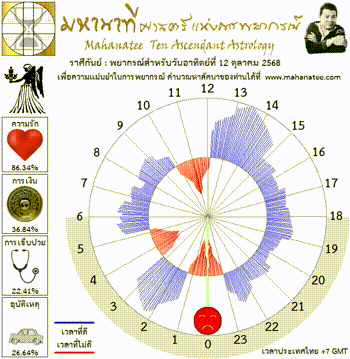 แผนภูมิและพยากรณ์ 12 ราศี สำหรับ วันอาทิตย์ที่ 12 ตุลาคม 2568