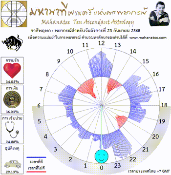แผนภูมิและพยากรณ์ 12 ราศี สำหรับ วันอังคารที่ 23 กันยายน 2568