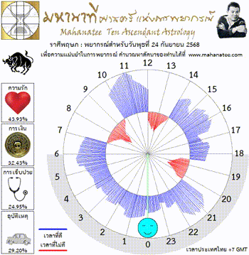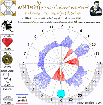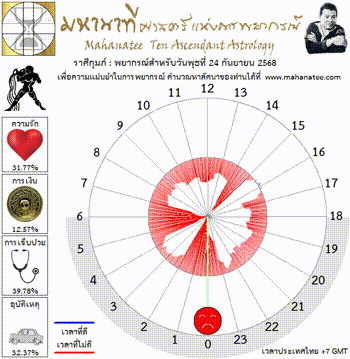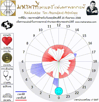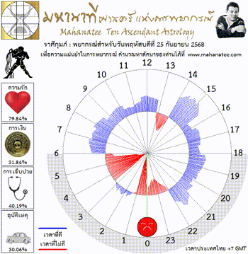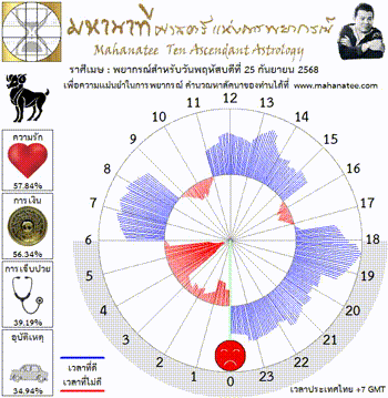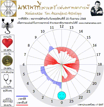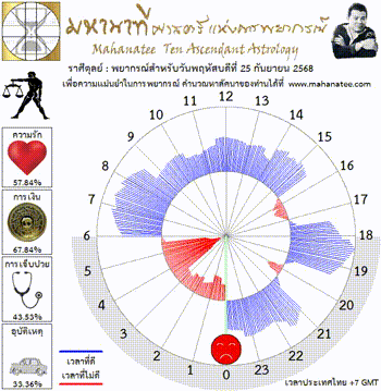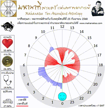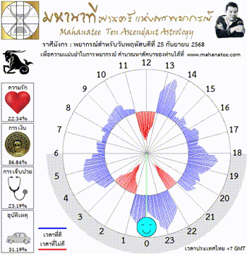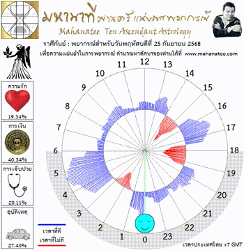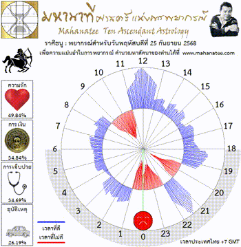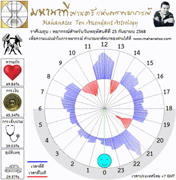 แผนภูมิและพยากรณ์ 12 ราศี สำหรับ วันพฤหัสบดีที่ 25 กันยายน 2568