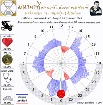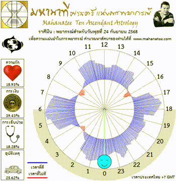 แผนภูมิและพยากรณ์ 12 ราศี สำหรับ วันพุธที่ 24 กันยายน 2568