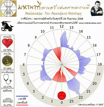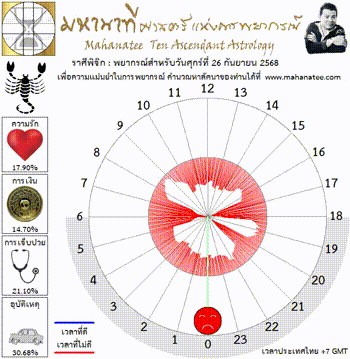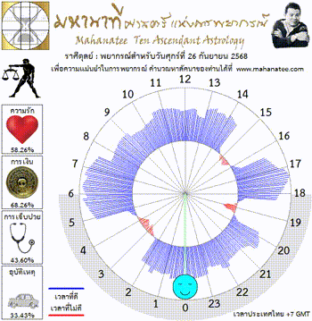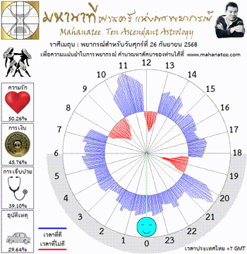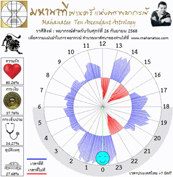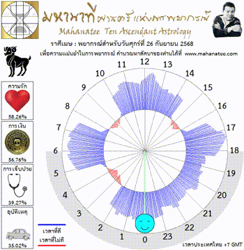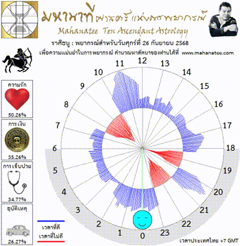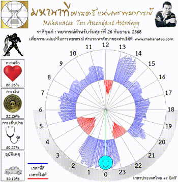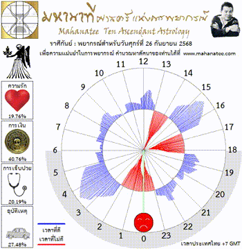 แผนภูมิและพยากรณ์ 12 ราศี สำหรับ วันศุกร์ที่ 26 กันยายน 2568