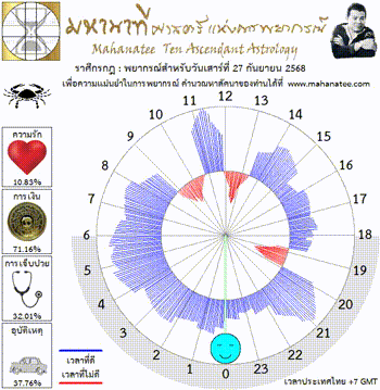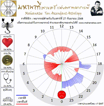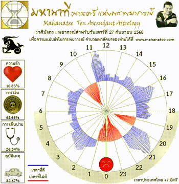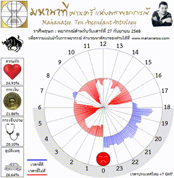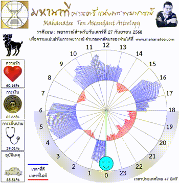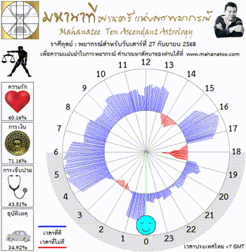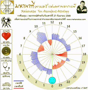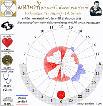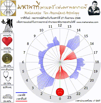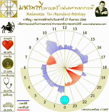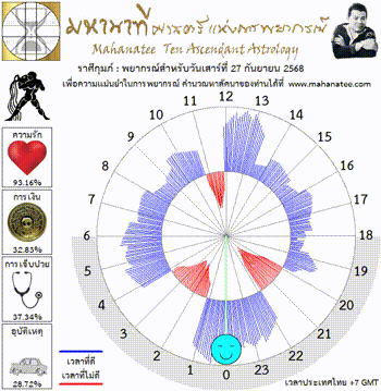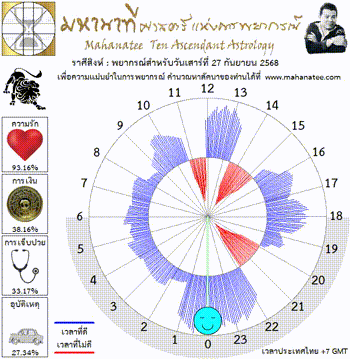 แผนภูมิและพยากรณ์ 12 ราศี สำหรับ วันเสาร์ที่ 27 กันยายน 2568