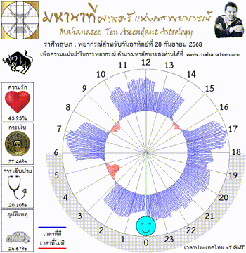 แผนภูมิและพยากรณ์ 12 ราศี สำหรับ วันอาทิตย์ที่ 28 กันยายน 2568