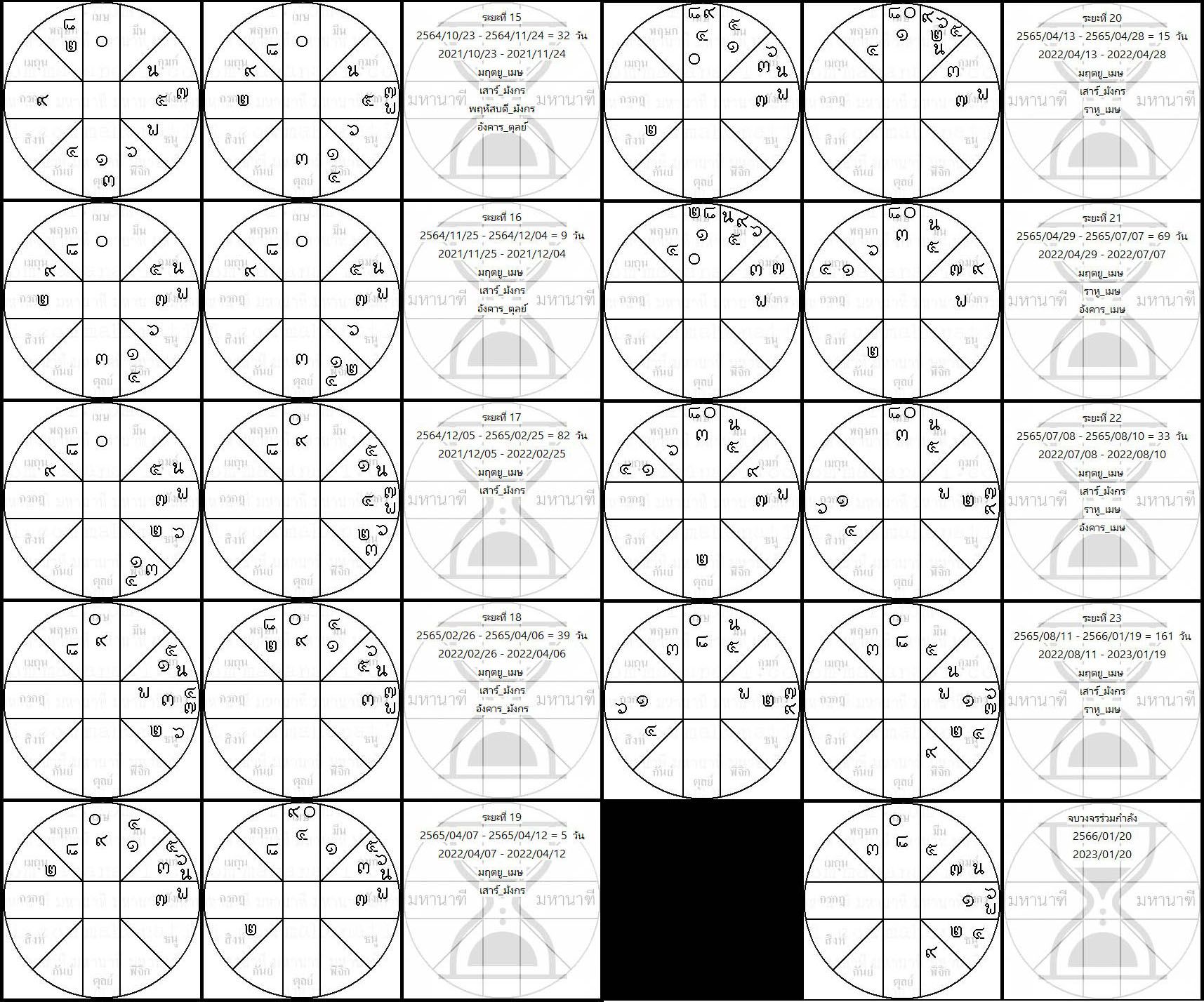 .... ๒๓ ตุลาคม ถึง ๒๔ พฤศจิกายน ดาวพฤหัสบดี ๕ จะทำงานในราศีมังกรครั้งสุดท้าย ก่อนจะจากไปราศีกุมภ์ และจะไม่กลับมายังราศีมังกรอีกเป็นเวลาเกือบ ๑๒ ปี หลังจากนั้นดาวเสาร์ ๗ และดาวมฤตยู ๐ จะรวมกำลังกันอย่างสบายใจ รอการมาถึงของคราสราหู ๘ ซึ่งยังเดาไม่ออกว่าหนทางของดวงดาวจะพาพวกเราไปทางไหน แผ่นดินไหวเตือนหลายพื้นที่ ภูเขาไฟระเบิด พายุก็เกิด และความตึงเครียดจากภาวะสงครามก็กรุ่นๆ ไวรัสก็ยังไม่หมดฤทธิ์ เอาไว้ใกล้ๆคราสราหู ๘ ถอยหลังเข้าราศีเมษ ร่วมกำลังกันระหว่างสามอสูร ก็จะมาเดาสถานการร์กันอีกรอบ