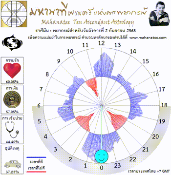 แผนภูมิและพยากรณ์ 12 ราศี สำหรับ วันอังคารที่ 2 กันยายน 2568