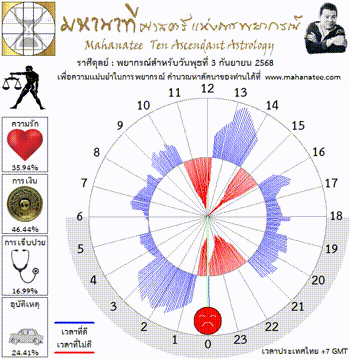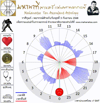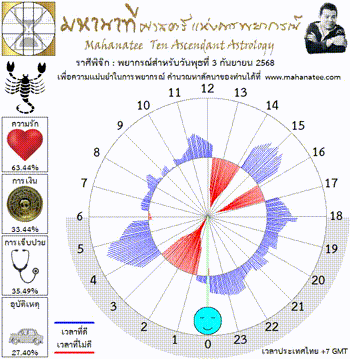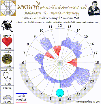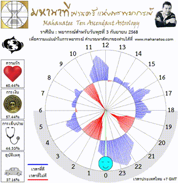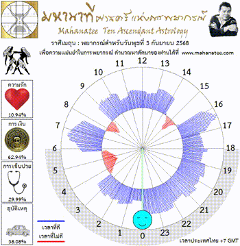 แผนภูมิและพยากรณ์ 12 ราศี สำหรับ วันพุธที่ 3 กันยายน 2568