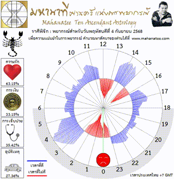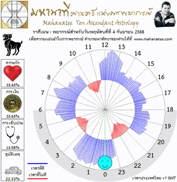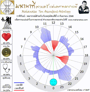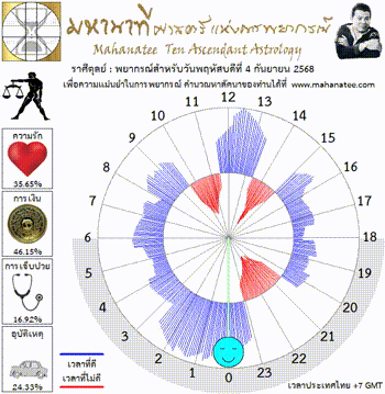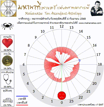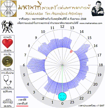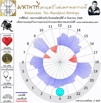 แผนภูมิและพยากรณ์ 12 ราศี สำหรับ วันพฤหัสบดีที่ 4 กันยายน 2568