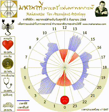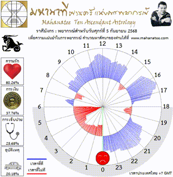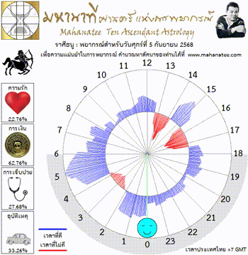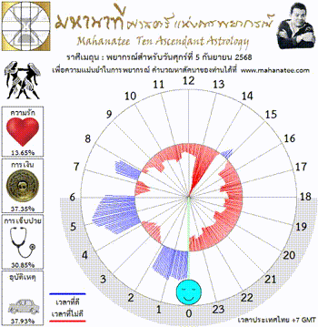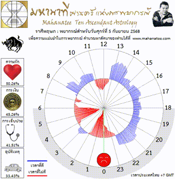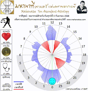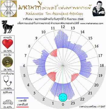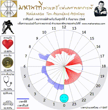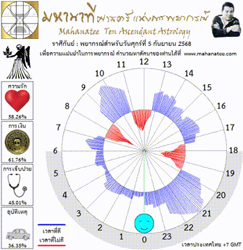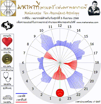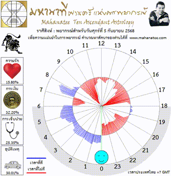แผนภูมิและพยากรณ์ 12 ราศี สำหรับ วันศุกร์ที่ 5 กันยายน 2568
