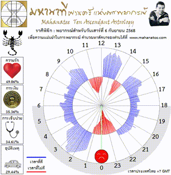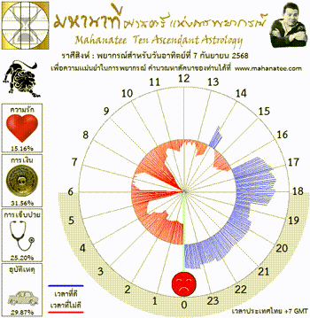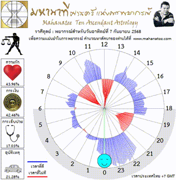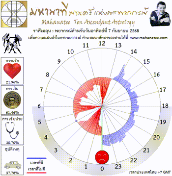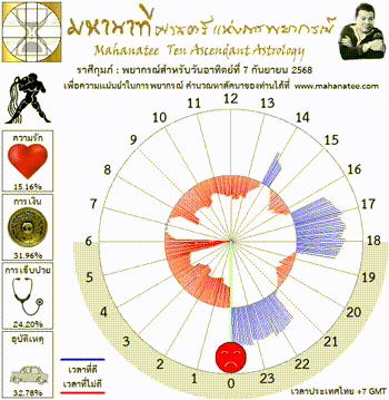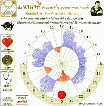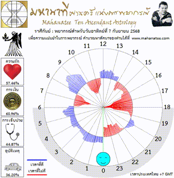 แผนภูมิและพยากรณ์ 12 ราศี สำหรับ วันอาทิตย์ที่ 7 กันยายน 2568