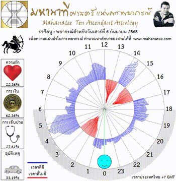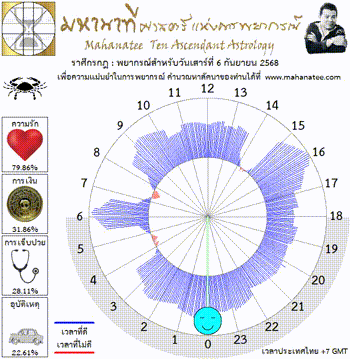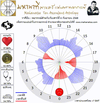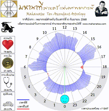 แผนภูมิและพยากรณ์ 12 ราศี สำหรับ วันเสาร์ที่ 6 กันยายน 2568