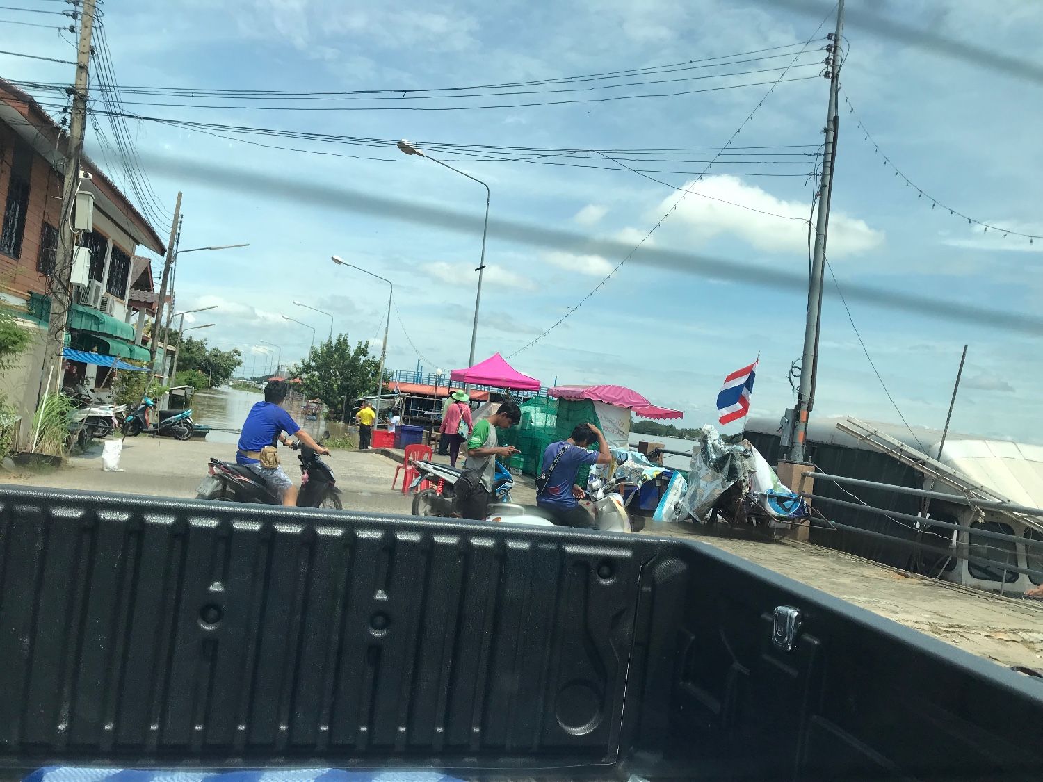 ที่ลำบากมากหน่อยก็ครอบครัวที่ต้องขนย้ายข้าวของหนีน้ำขึ้นมาอยู่กันบริเวณริมถนน