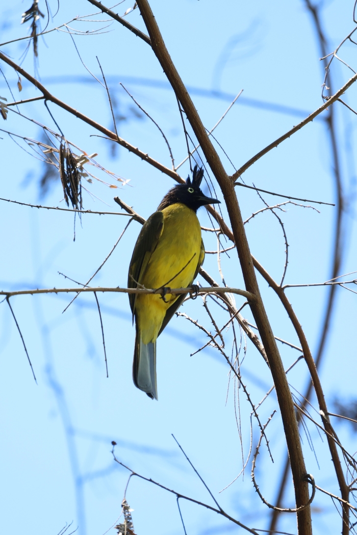 เมื่อรถจอด ก็ได้รับการต้อนรับจากนกที่อยู่ในบริเวณนั้นทันทีนกปรอดเหลืองหัวจุก (Black-crested Bulbul) เกาะอยู่ไม่ไกล