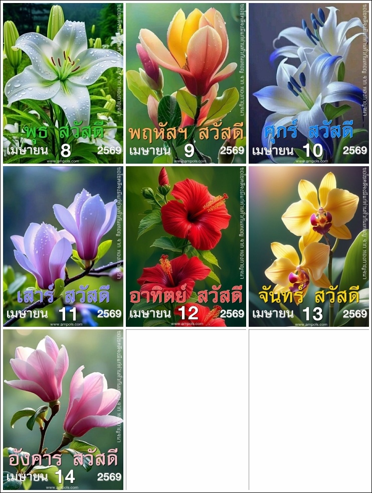 แจกภาพปฏิทินประจำวัน ครั้งที่ 42 (8-14 เมษายน 2569)